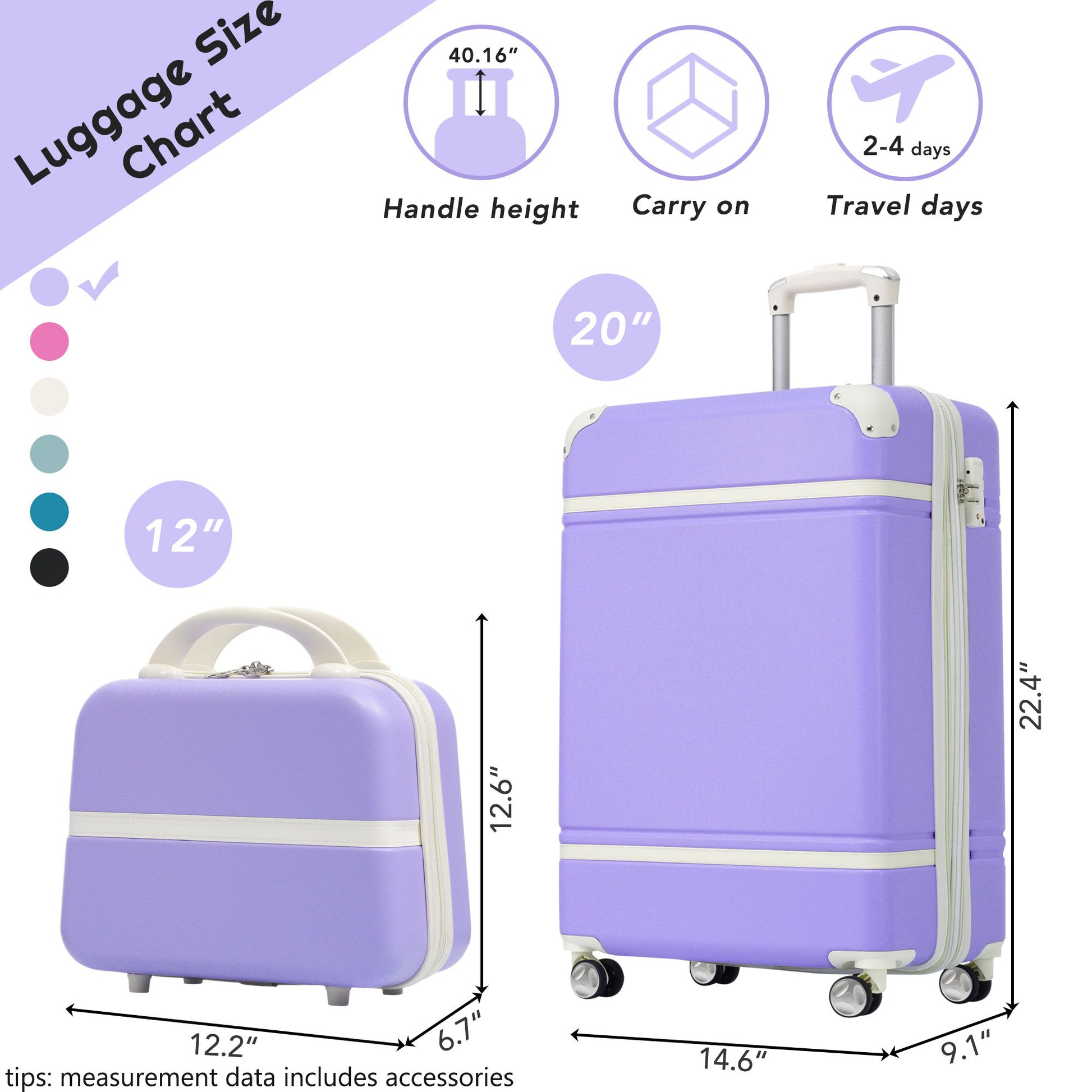 - Airplane-approved: A 20-inch suitcase and a portable cosmetic case is very convenient for a short trip. The small suitcase is the size allowed by the aircraft and is exempt from the check-in process.