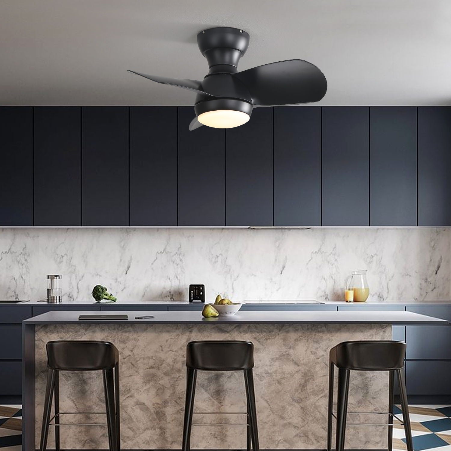 23" Bedroom Ceiling Fan With 3 Color Dimmable 3 ABS Blades Remote Control Dc Motor Black With 18W Led Light - Black