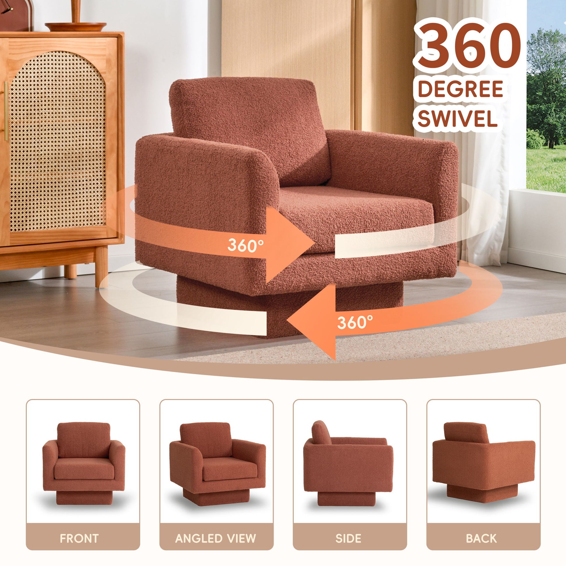 360° Modern Swivel Accent Chair Round Armchair, Thick Padded Single Lounge Sofa Upholstered Comfy