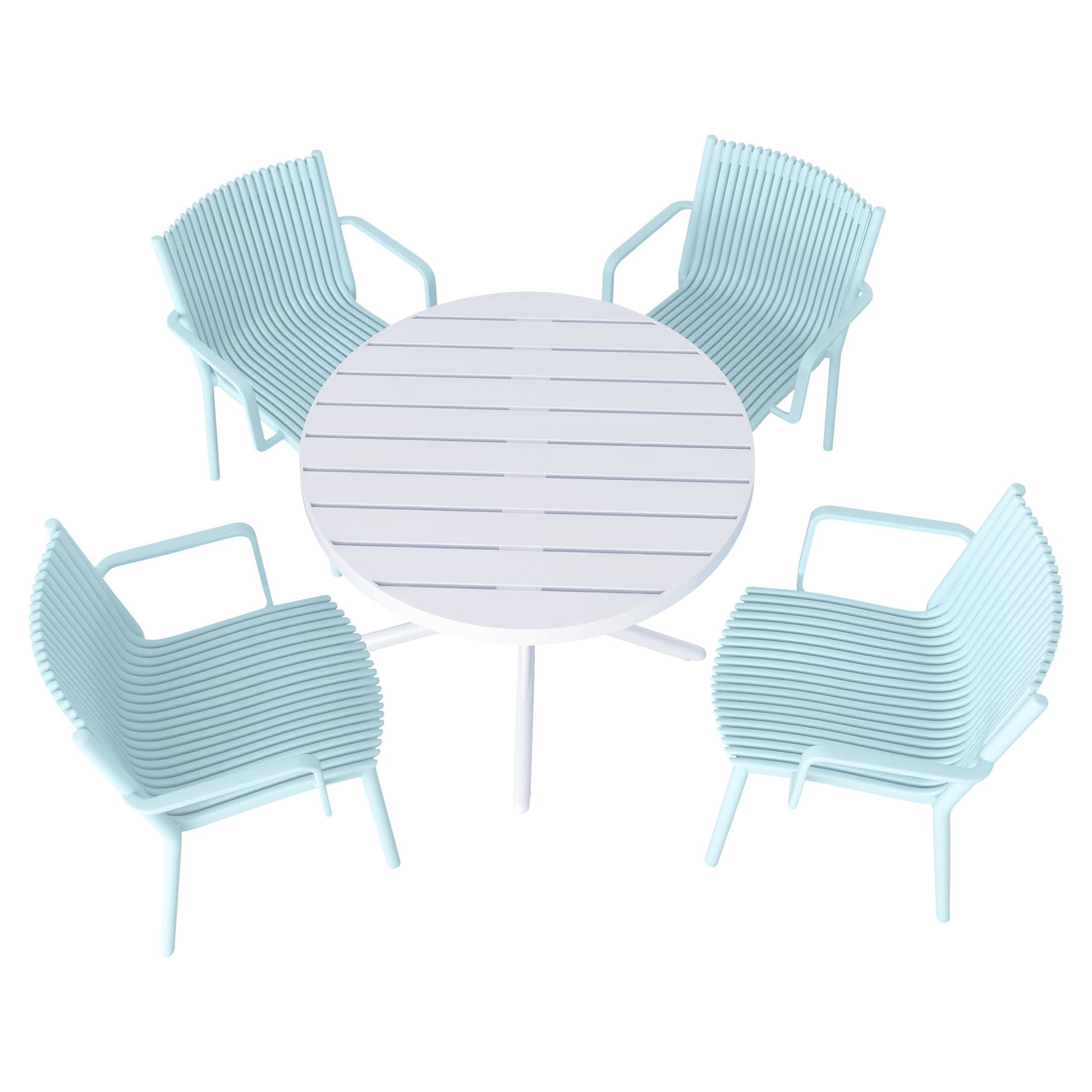 4 Modern Stackable Plastic Armchair Matched With Round Table