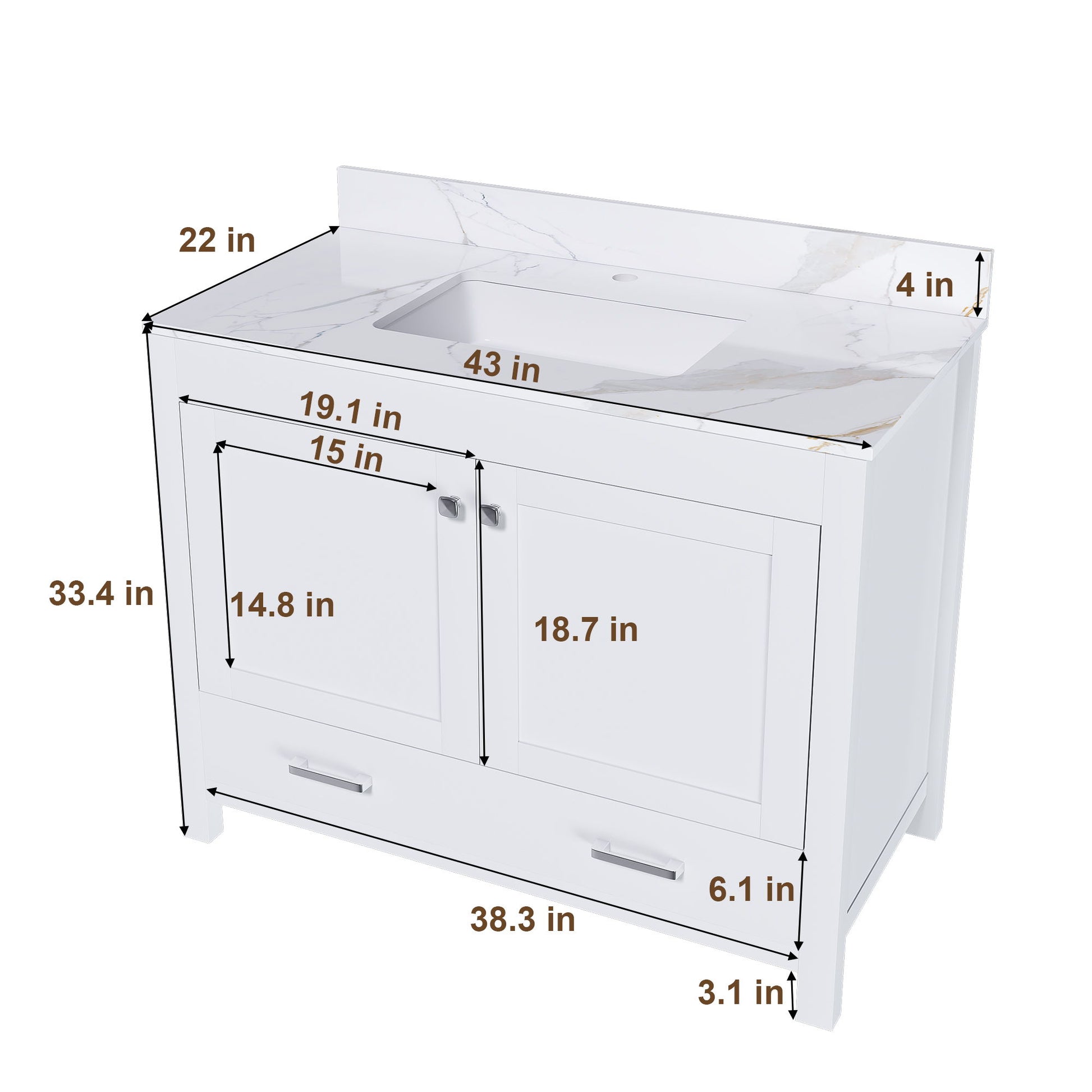 43" Bathroom Vanity, Multi Functional Cabinet, Doors And Drawer - White