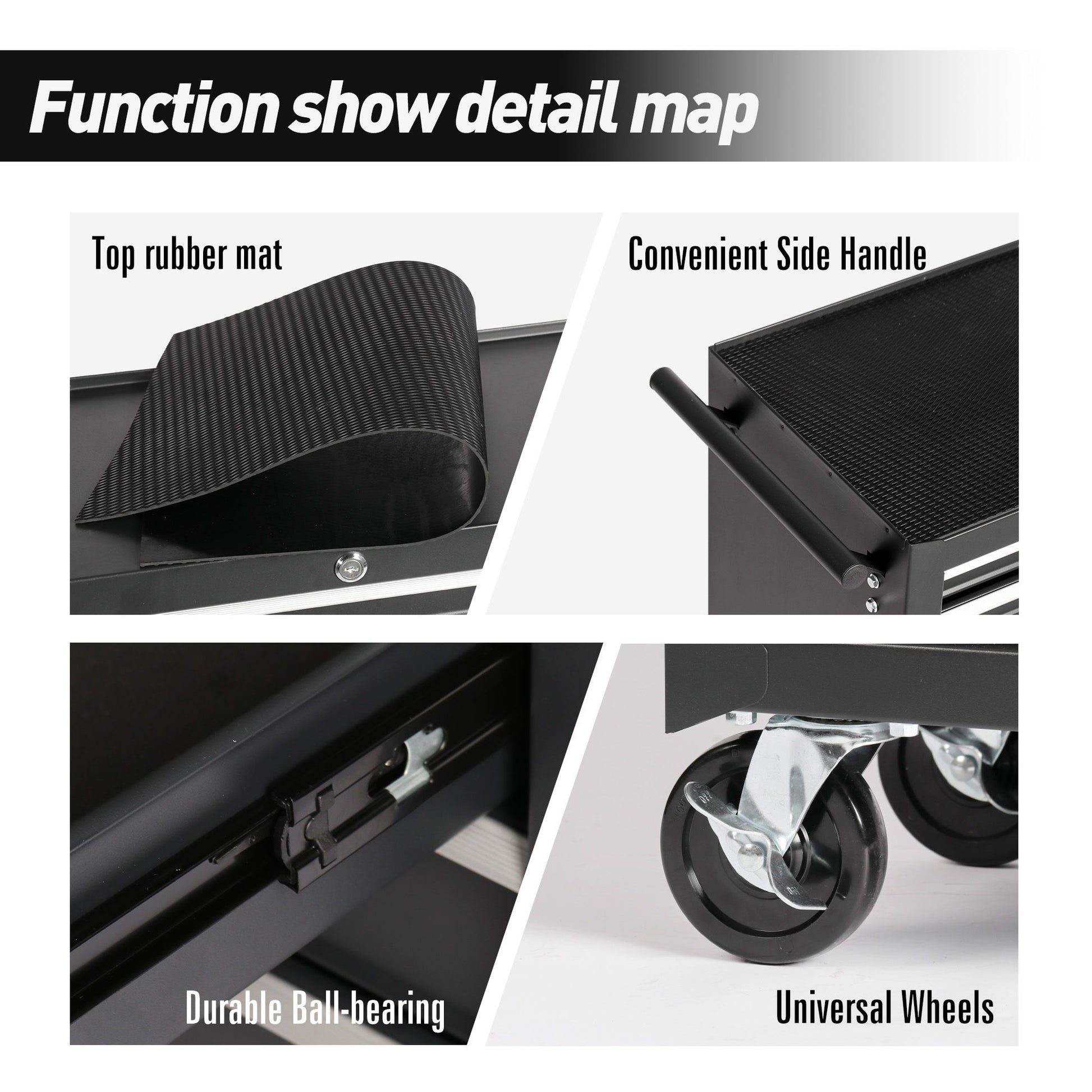 7 Drawer Rolling Tool Chest With Wheels, Multifunctional Tool Box And Storage Cabinet For Garage, Workshop, Or Repair Shop - Black