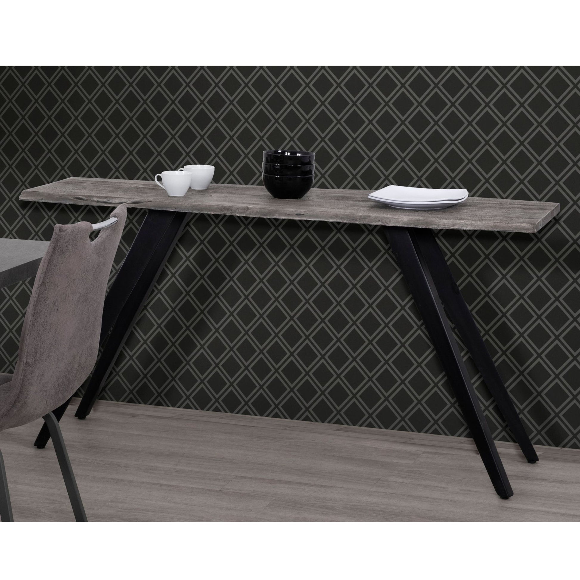 Acacia Wood And Metal Console Table, Live Edge, Angled Legs, Modern Living Room Furniture - Gray / Black