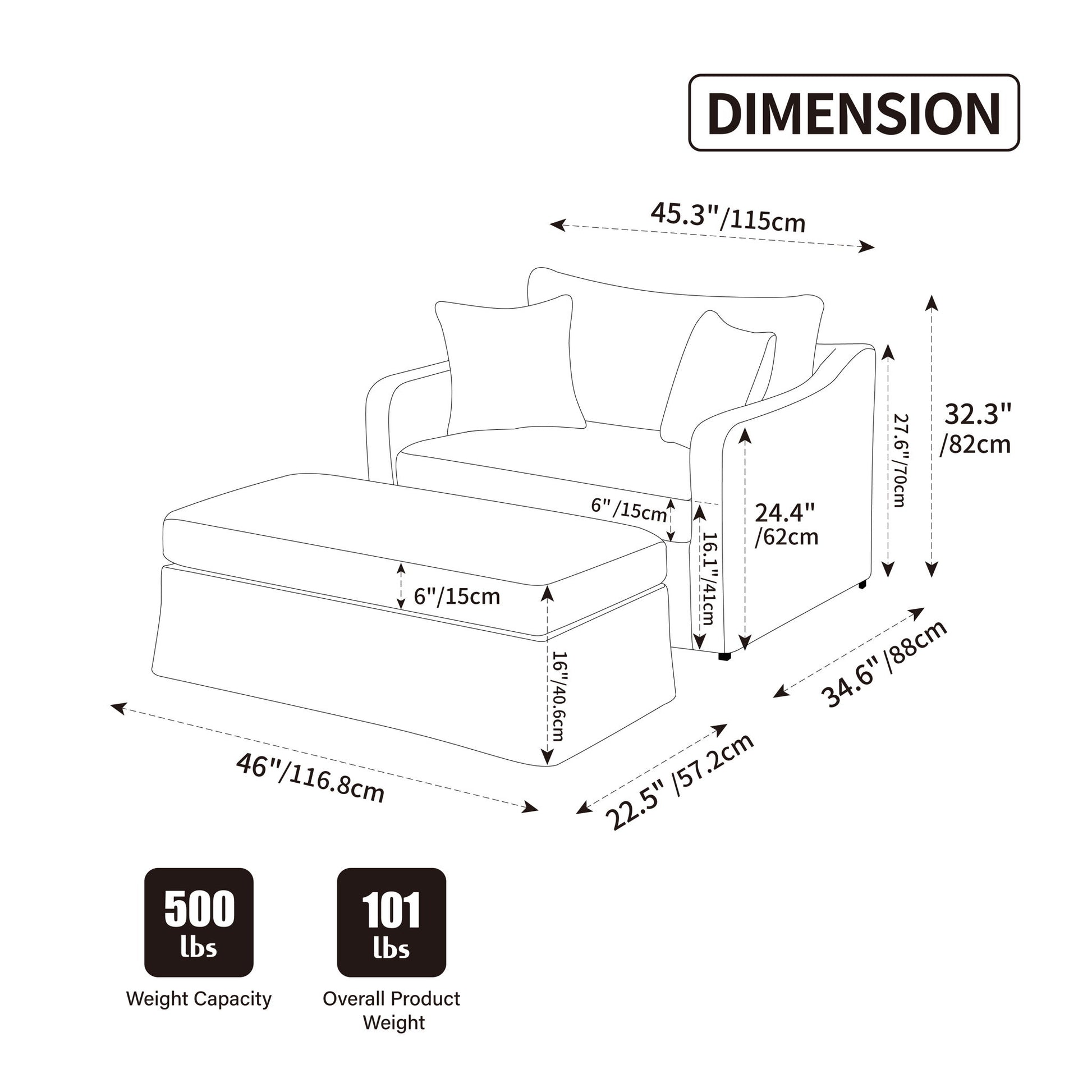- Elegant Design: Modern oversized silhouette with clean lines and metal legs for timeless appeal