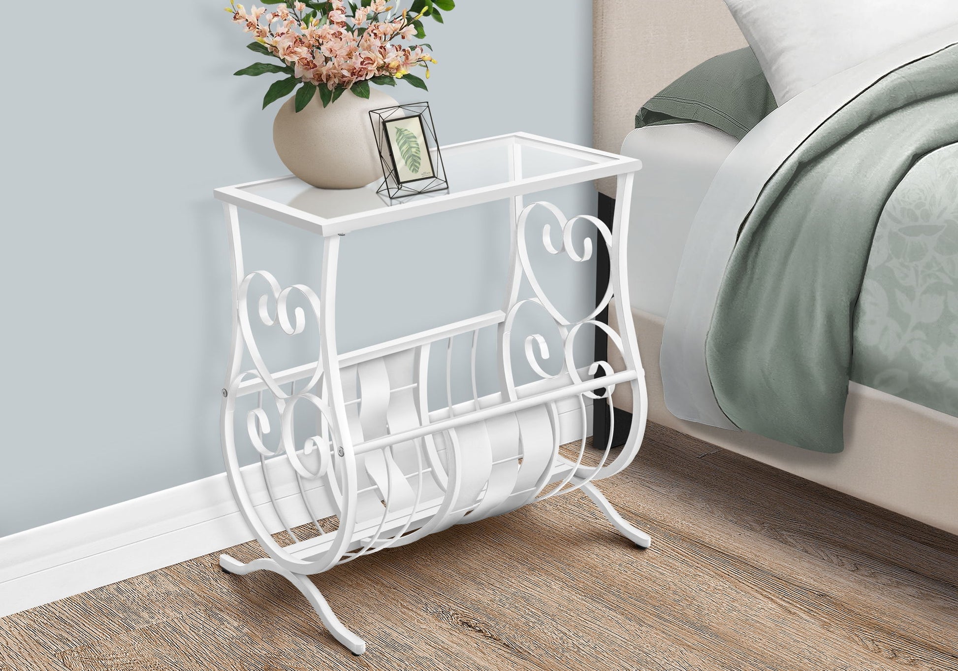 - Sturdy Storage: Includes a sturdy curved metal holder at the bottom, ideal for storing magazines and books, keeping your space organized.