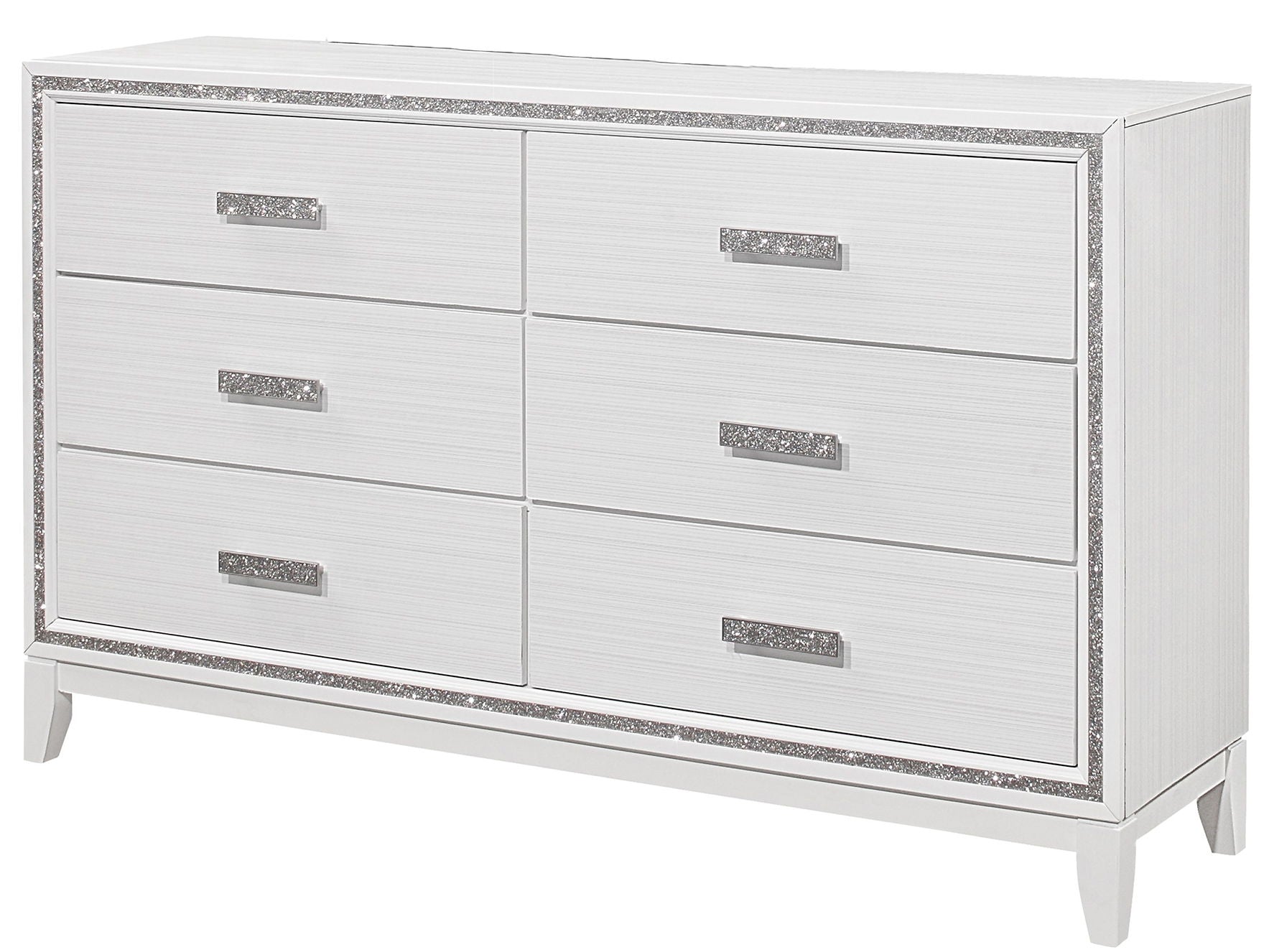 - Glamorous Design: The Almera Glitter White Dresser features a transitional glam style with a crushed crystal-like accent trim that adds a touch of elegance and sophistication to any bedroom decor.