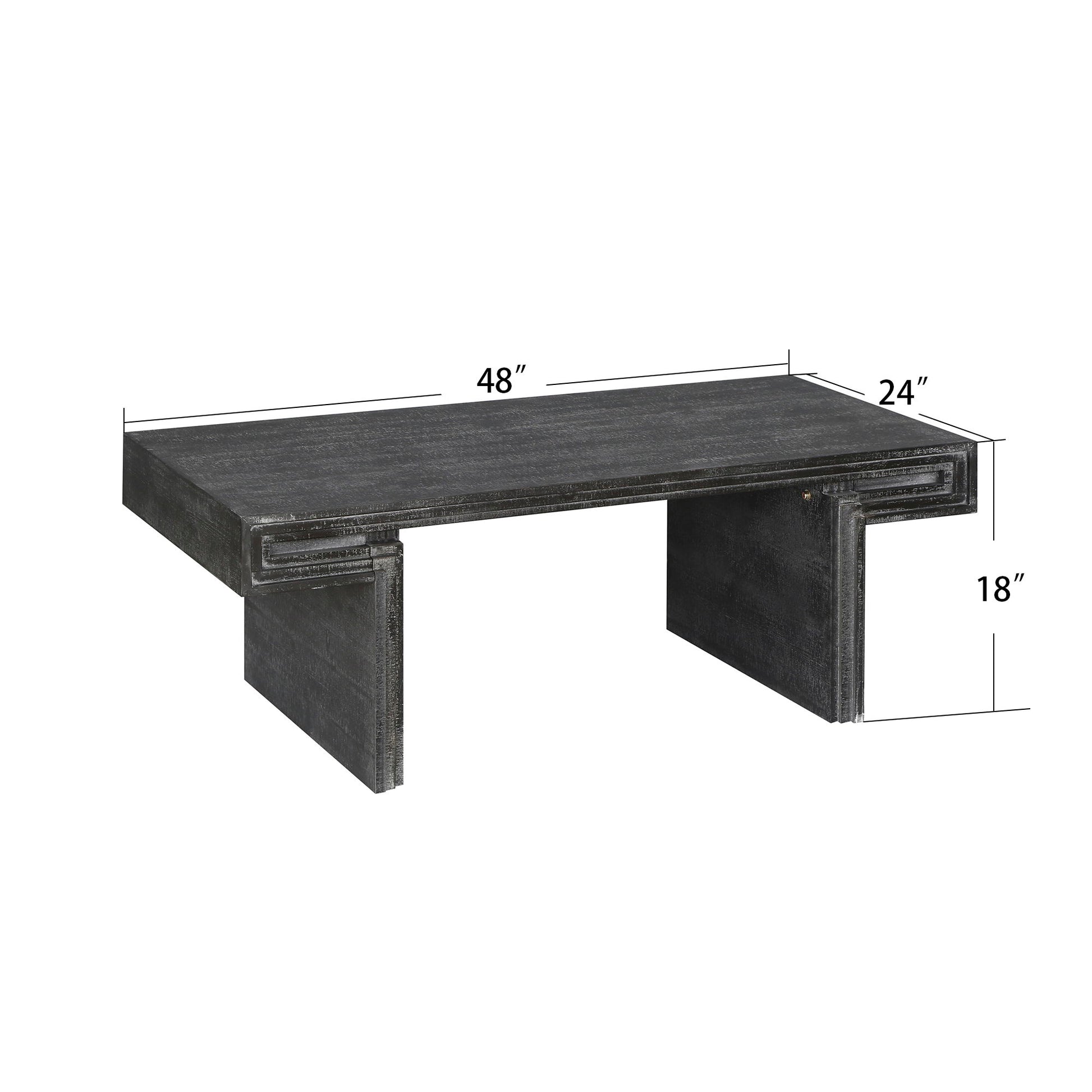 American Vintage Industrial Coffee Table, Premium Reclaimed Wood Texture, Double Tier Structure - Antique Black