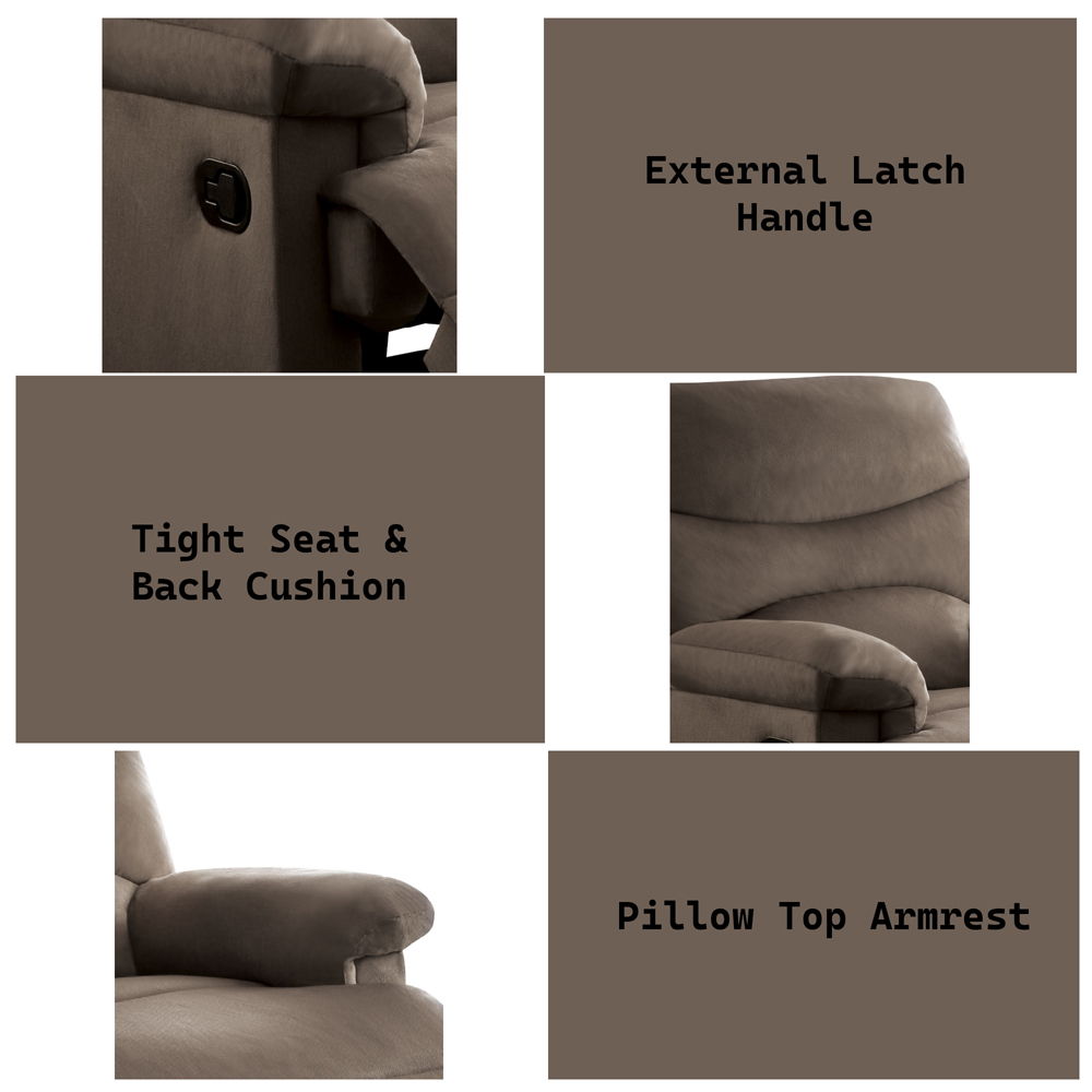 The lovely Arcadia recliner offers comfort, style and value for any home. A smooth microfiber seat cushion provides relaxation from seat to toe with an easy to reach external handle for operating the reclining mechanism.
