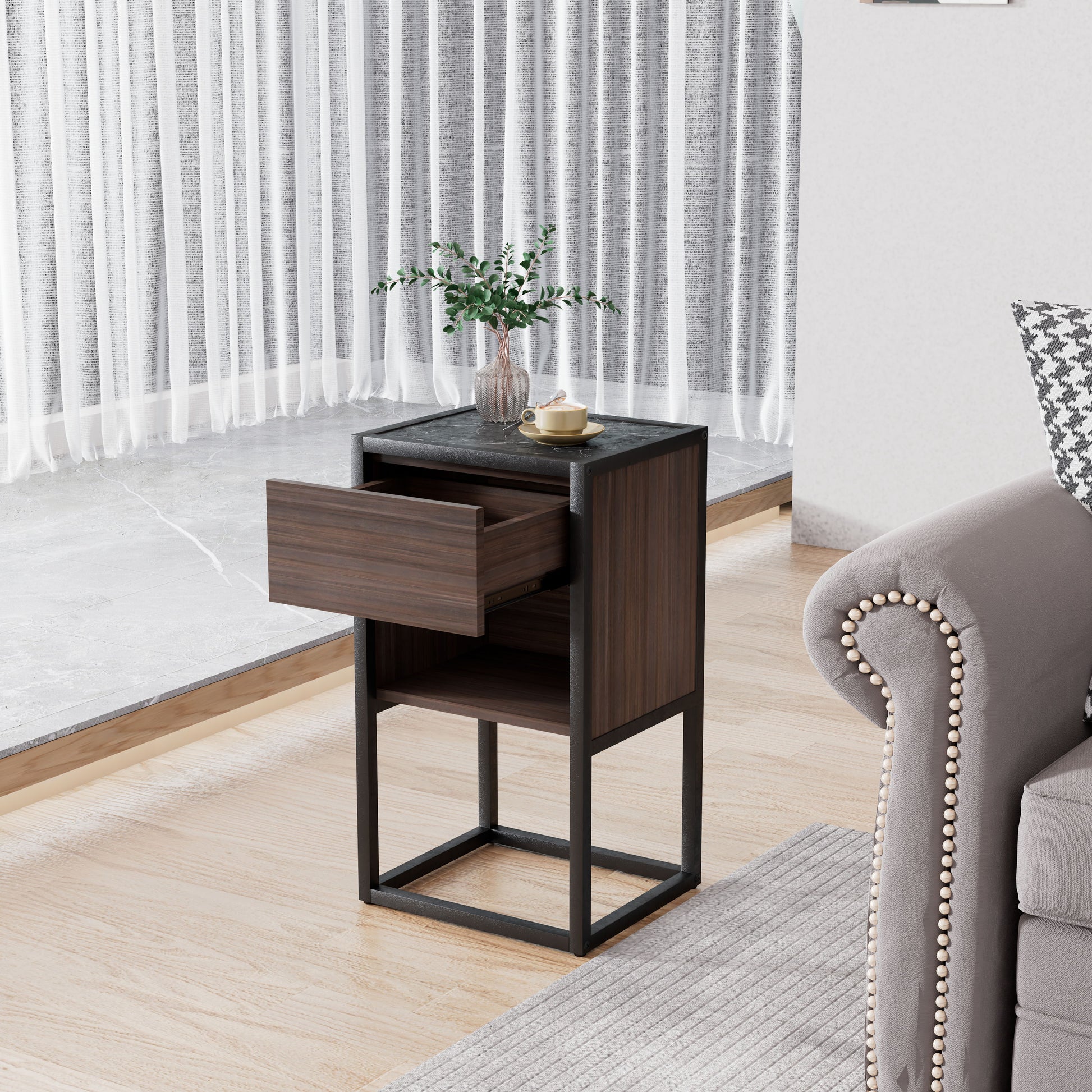 Armando Living Room Side Cabinet, Corner Cabinet, Bedroom Night Stand - Dark Brown / Black