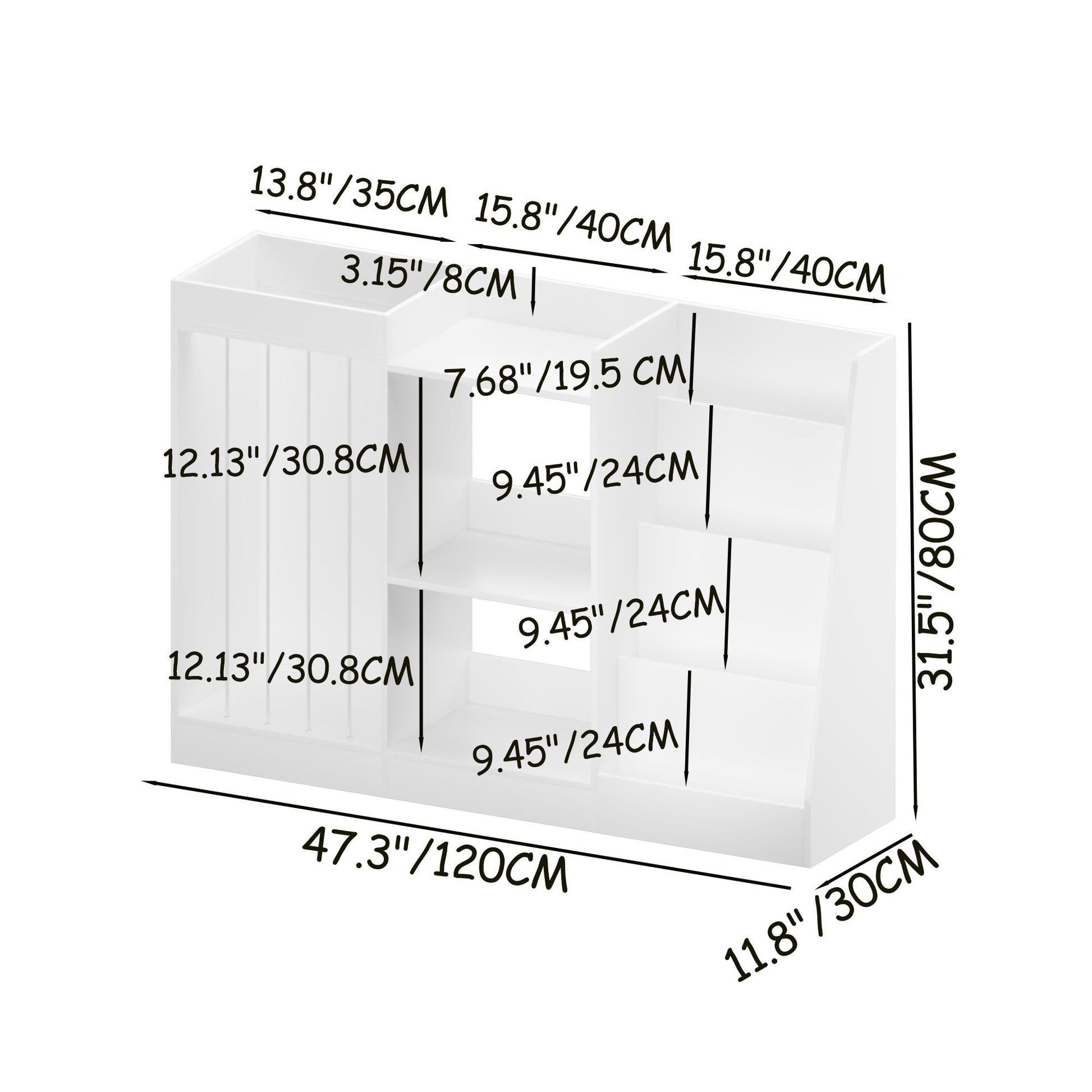 47.3"W x 11.8"D x 31.5"H - 42.35 lb