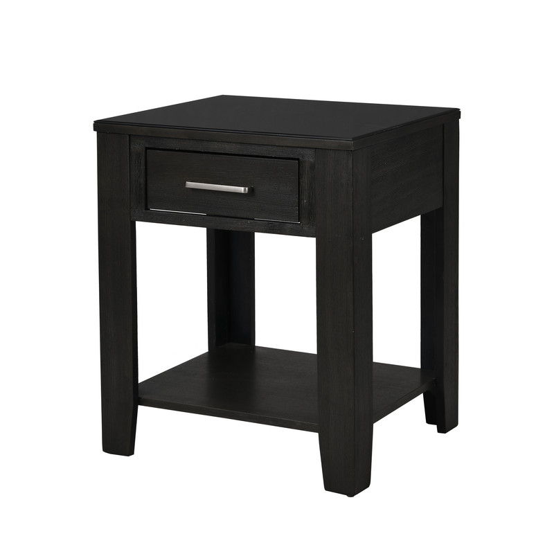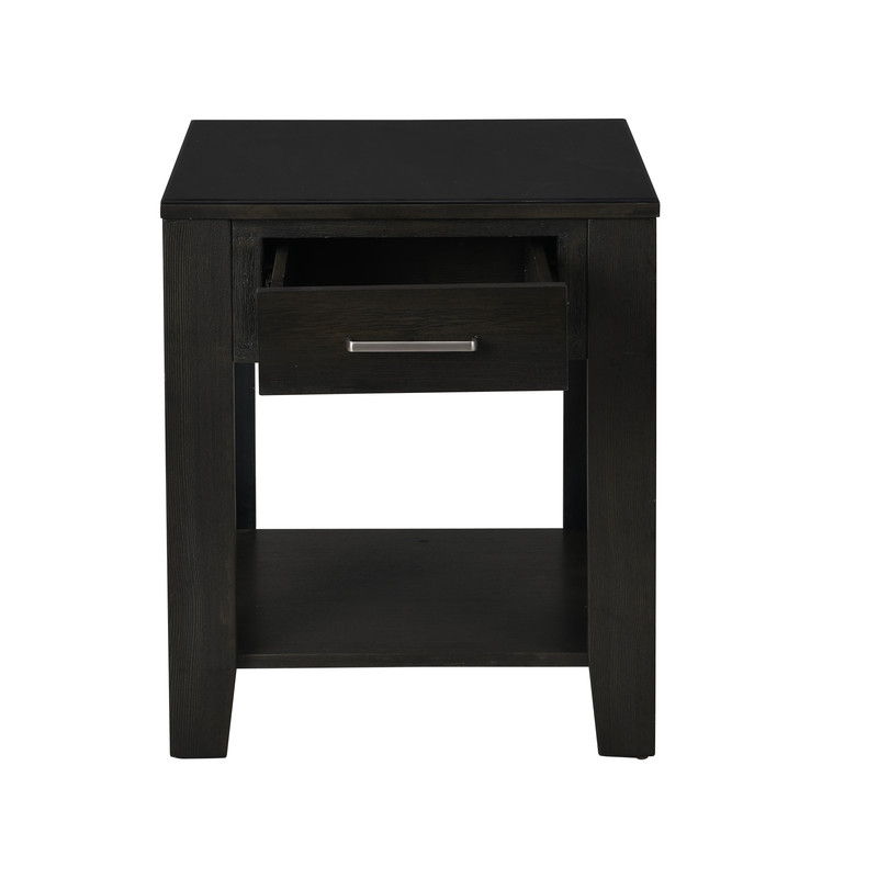 Bruno - Wooden End Table With Tempered Glass Top And Drawer - Ash Gray