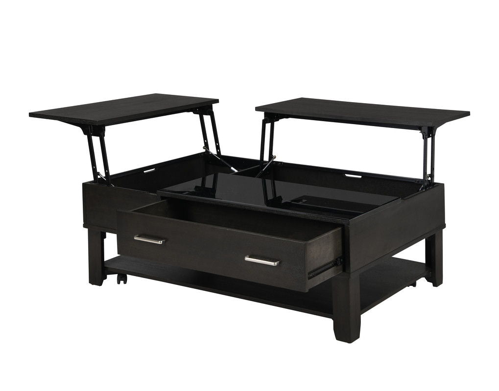 Bruno - Wooden Lift Top Coffee Table With Tempered Glass Top And Drawer - Ash Gray