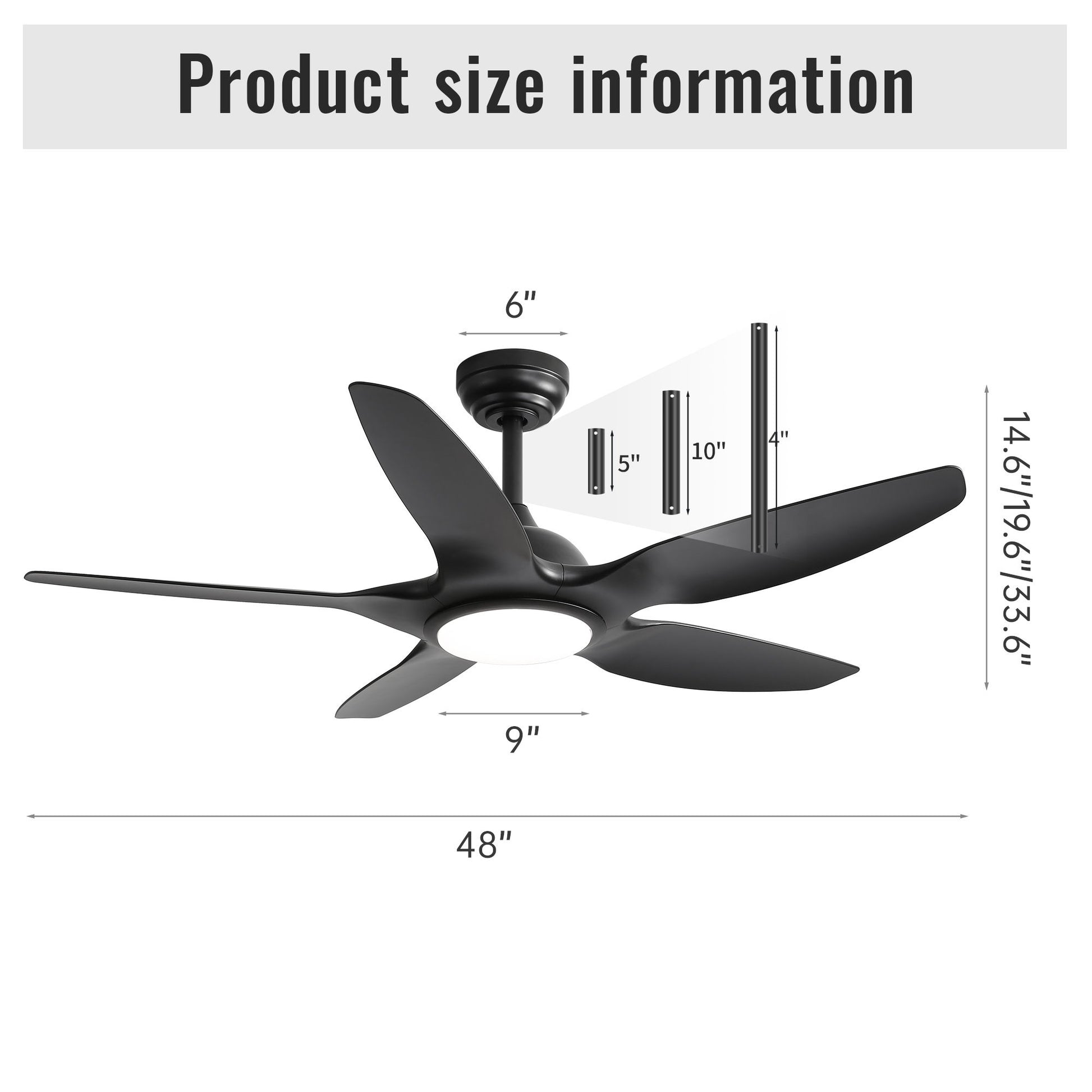 Ceiling Fan With Dimmable LED Light And Remote Control, 5 Blades DC Motor - Black