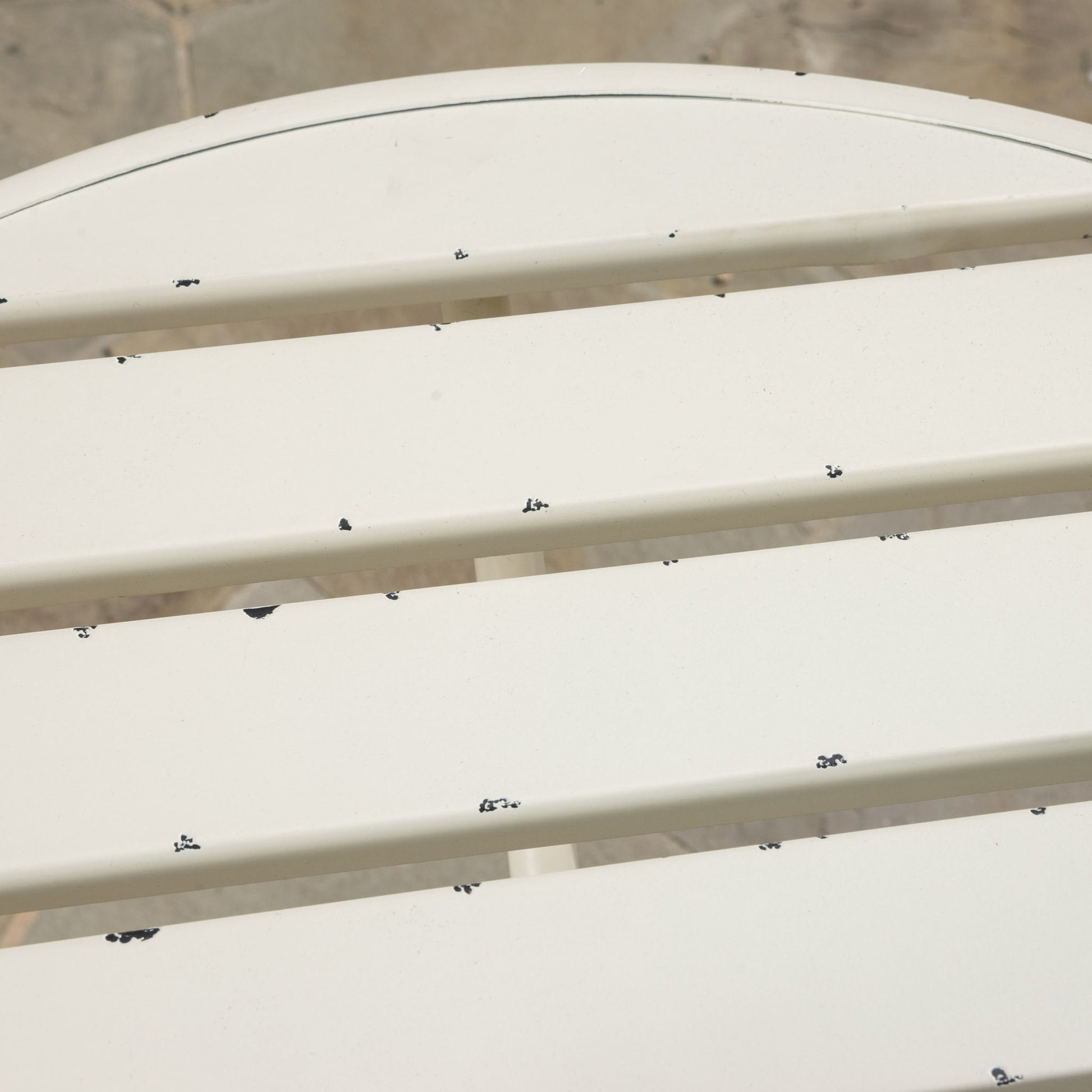 - Durable Construction: Crafted from weather and water-resistant iron, the set includes a round table and two armchairs with splat backs. The slatted details ensure water doesn't pool, ma it ideal for outdoor use.