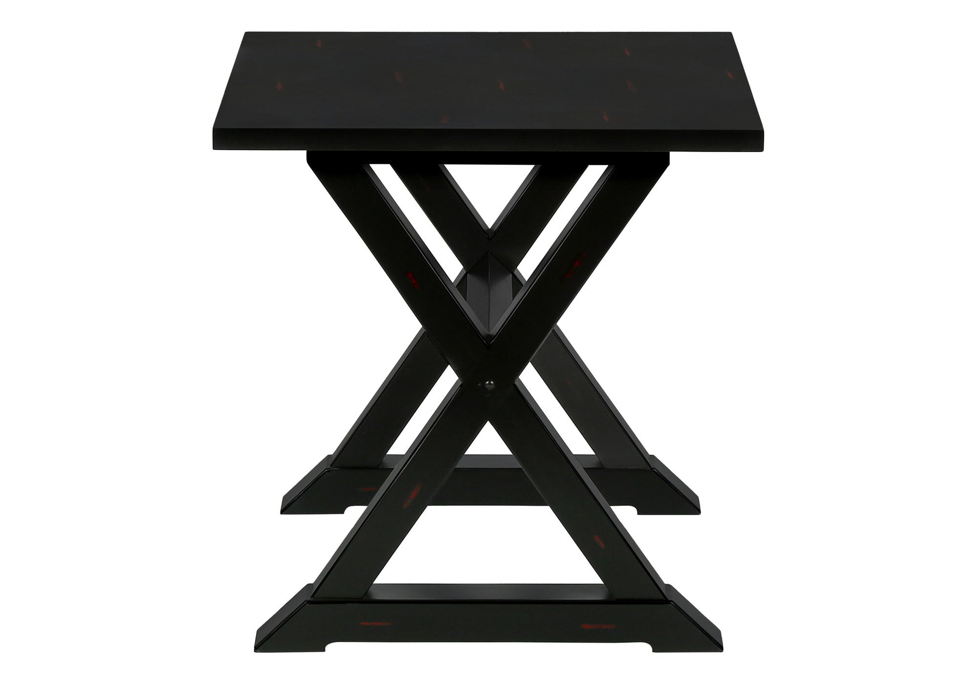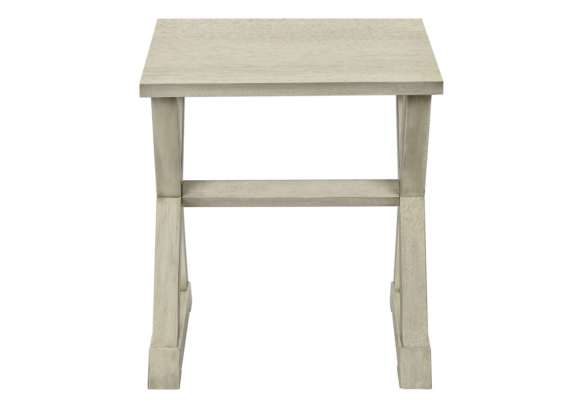 - Versatile Design: This accent table features a solid wood trestle style base, making it suitable as an end or side table in a living room, or as a chic nightstand in a bedroom.