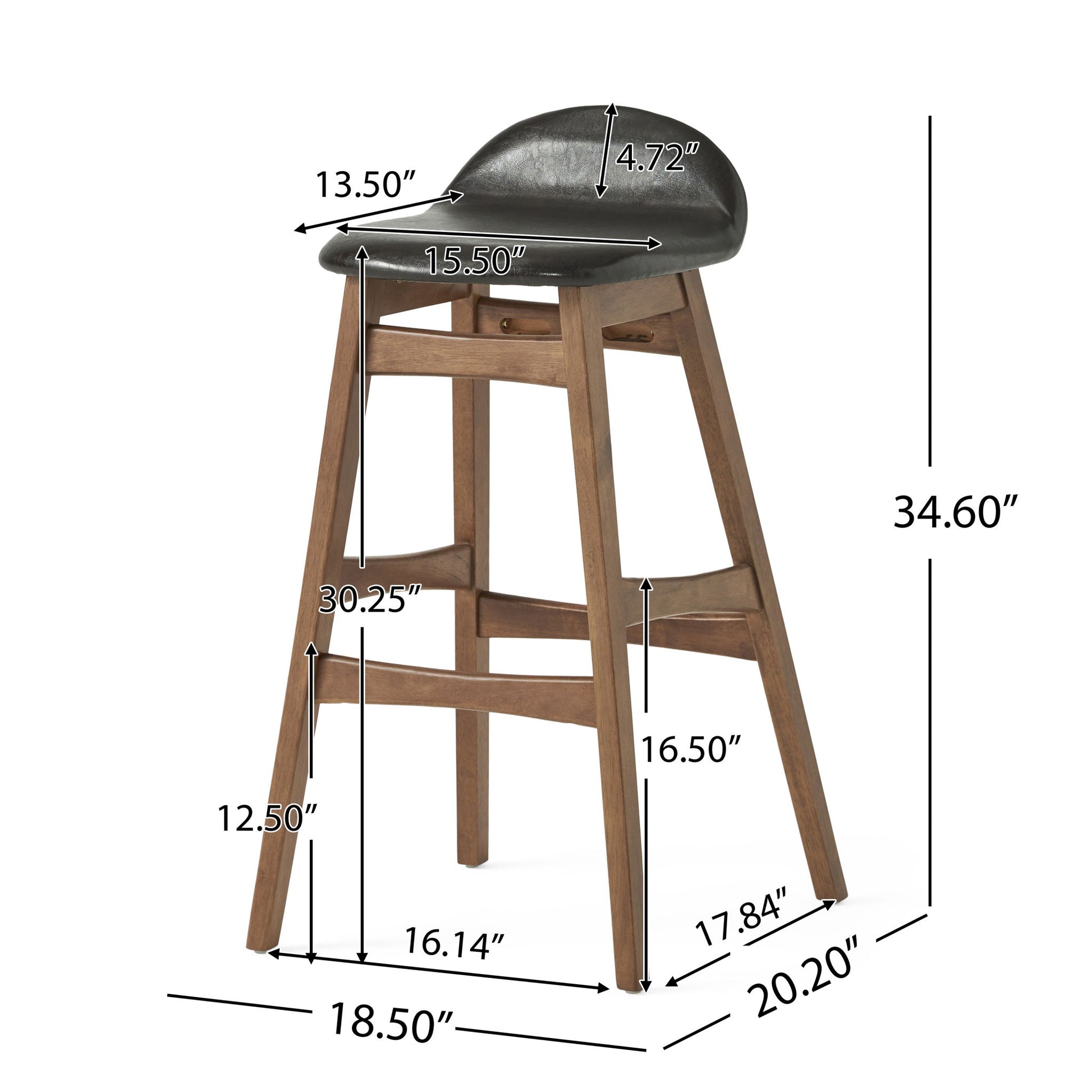 Contemporary Bar Stool With Stylish Seat And Small Backrest - Dark Brown
