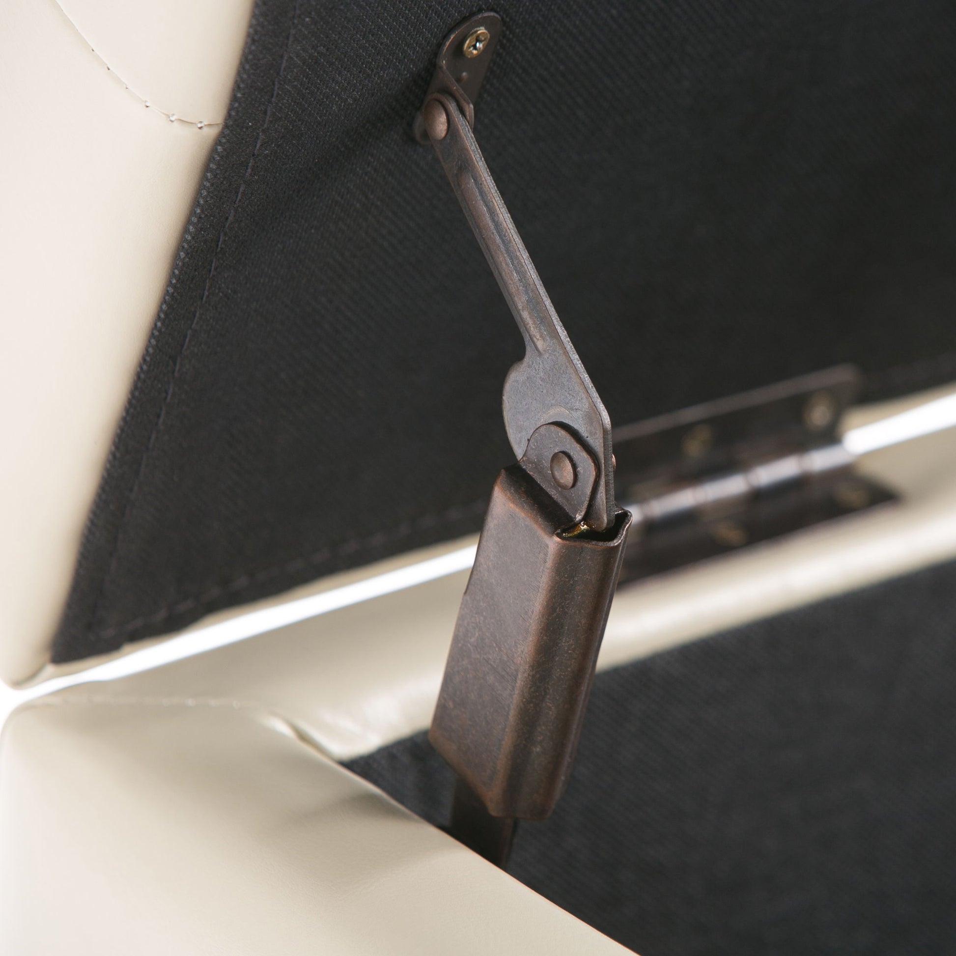 - Features large interior storage space with child safety hinge to prevent lid slamming