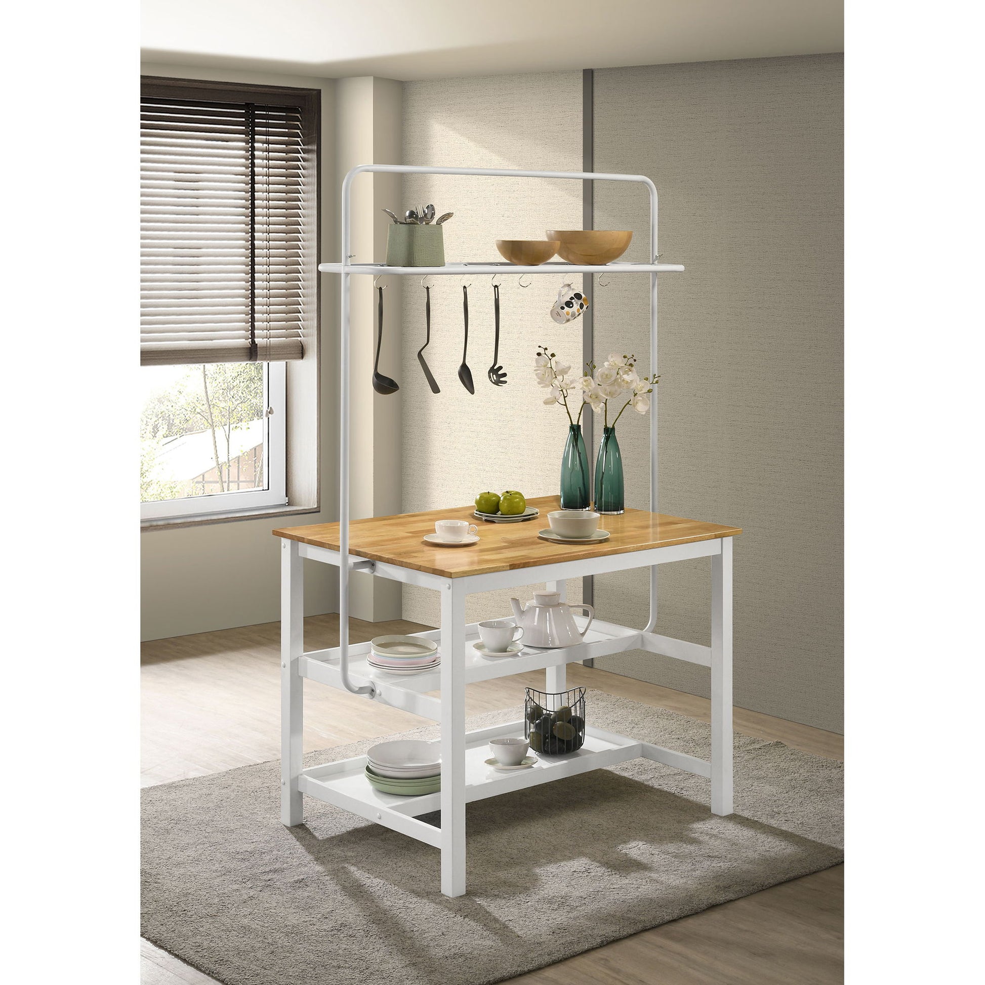 Cowichan - Kitchen Island Counter Table With Pot Rack - White