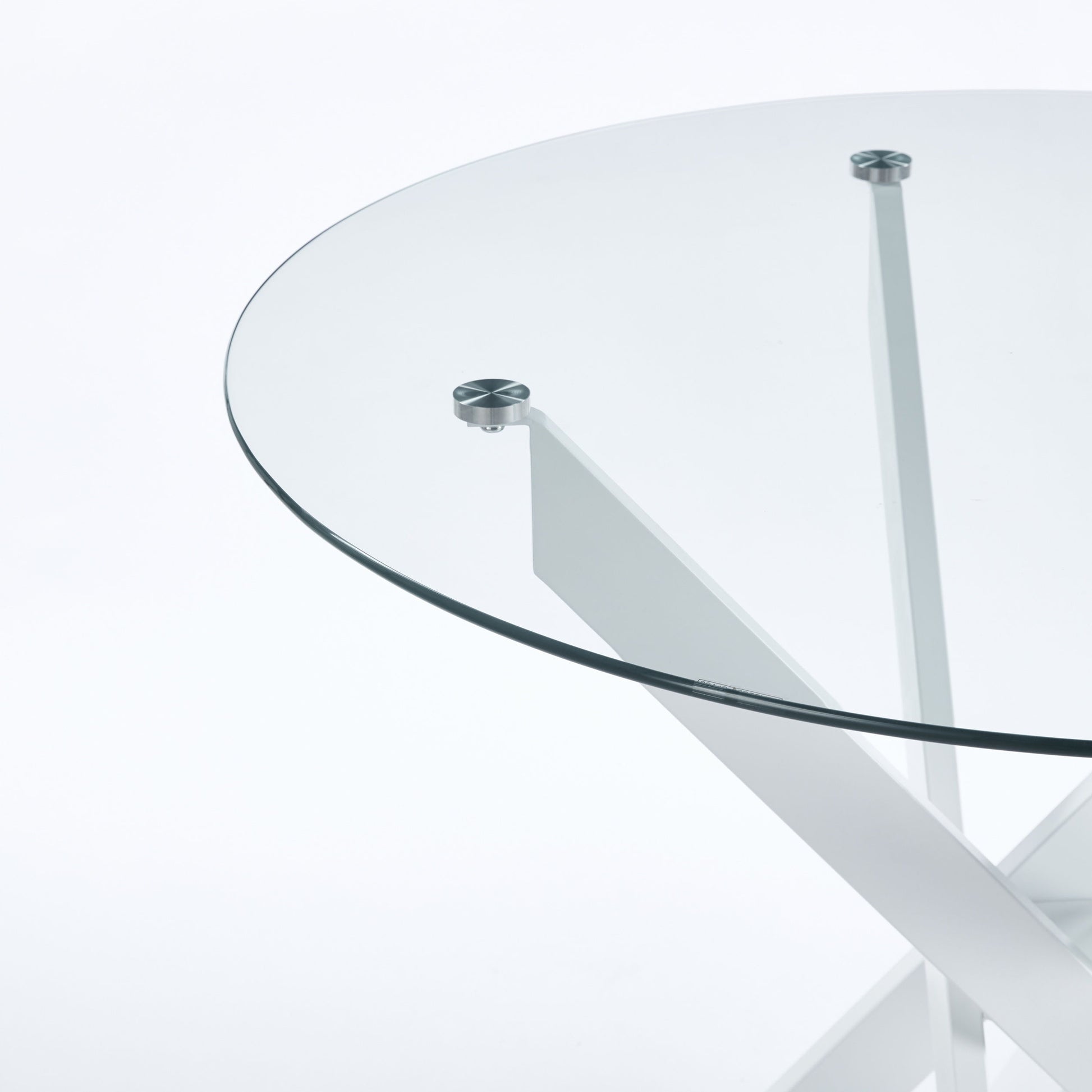 Dining Table With Cross Metal Leg And Tempered Glass, Modern Space Saving Kitchen Table For Living Room Legs - White