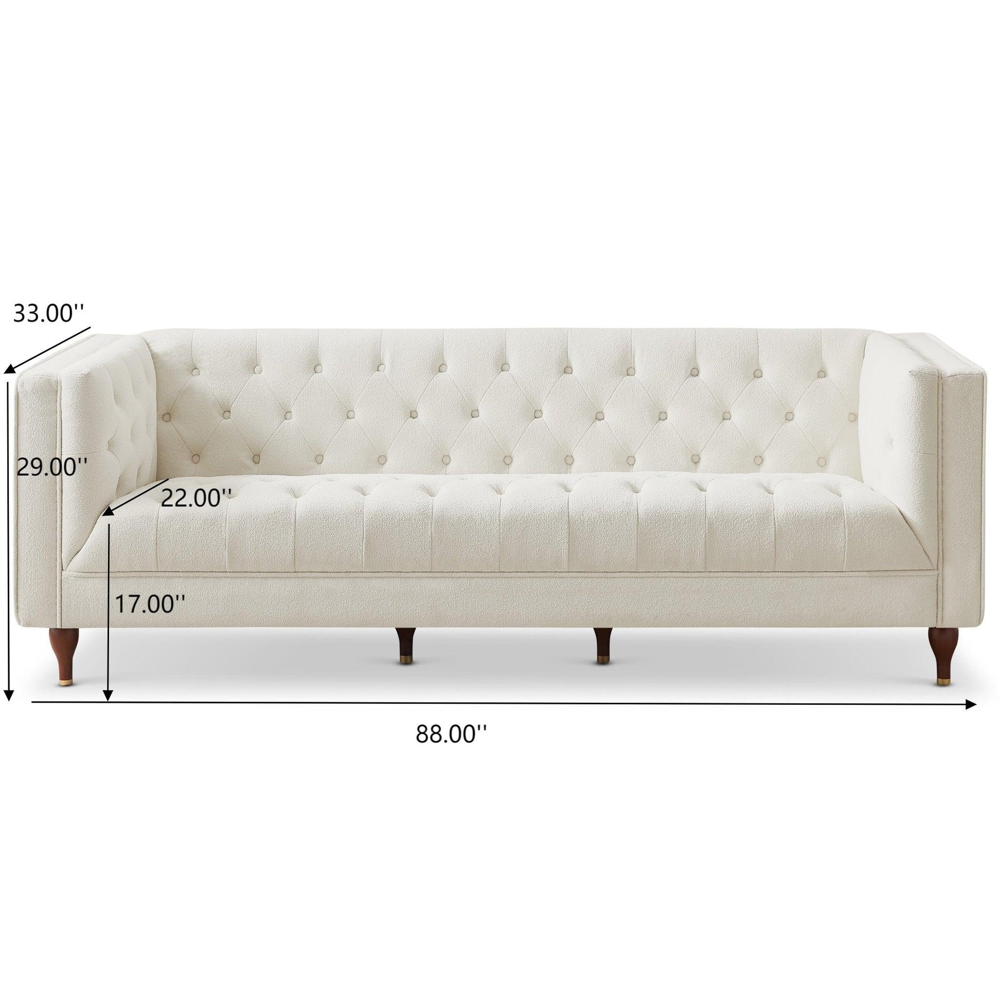 Evelyn - Mid-Century Modern Boucle Luxury Chesterfield Sofa - Ivory White / White