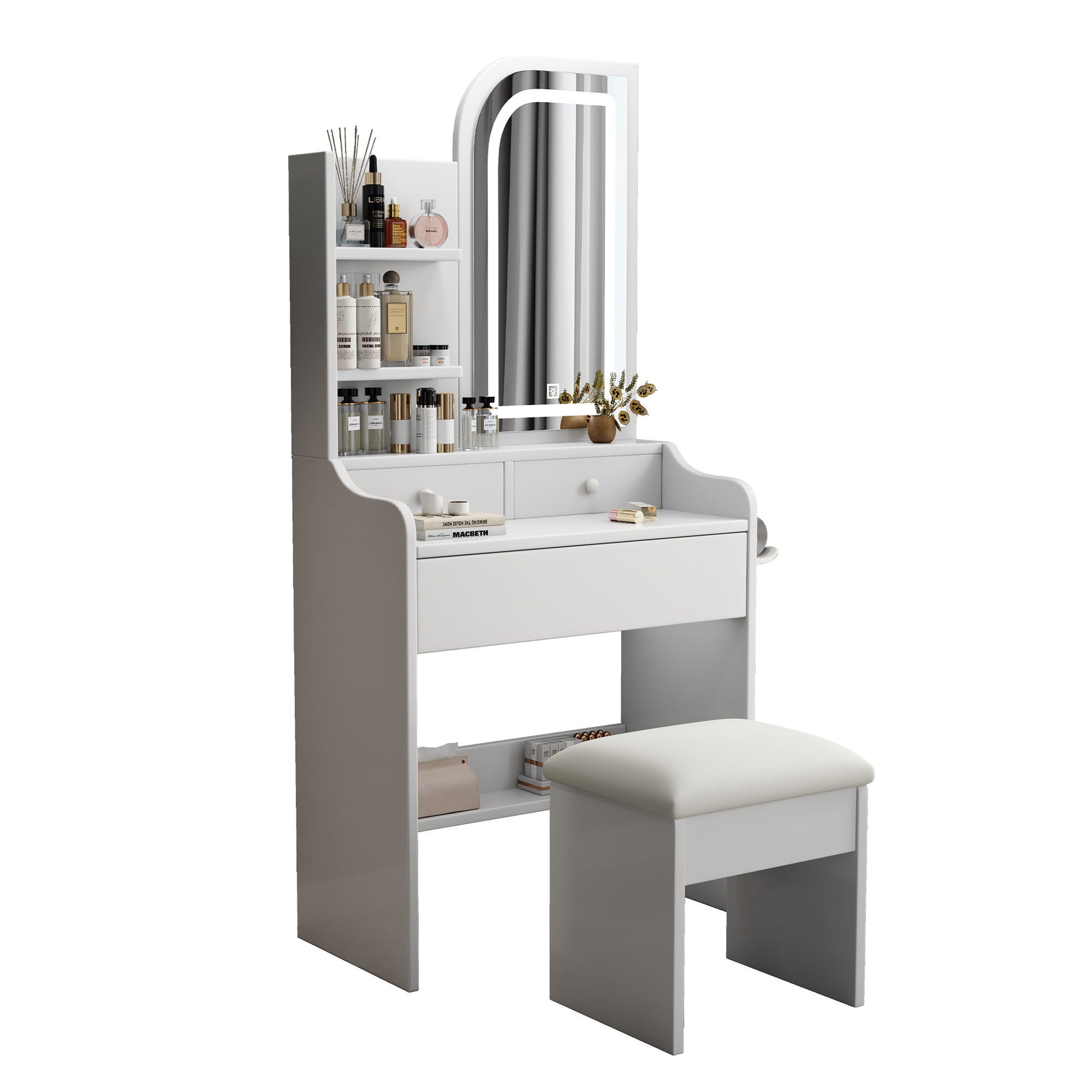 - Ample Storage: Includes spacious tabletop, multiple drawers, and side shelves for organized beauty essentials.