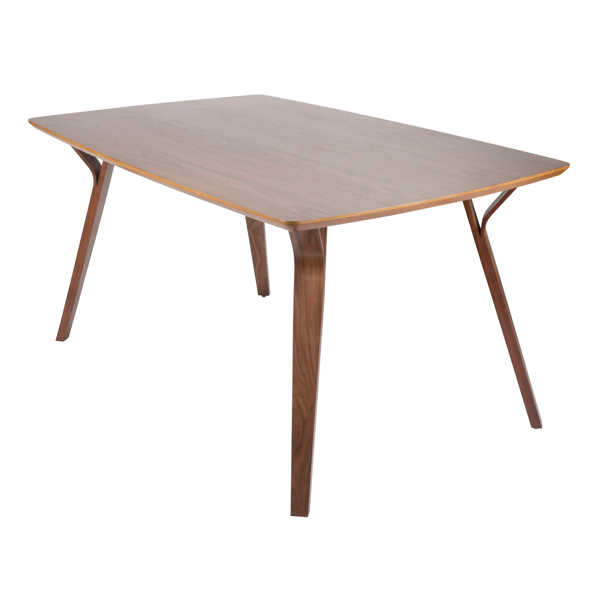 - Design & Style: The Folia Dining Table features a Mid-Century Modern design with a rectangular top, rounded edges, and splayed tapered legs, offering a clean and contemporary aesthetic.