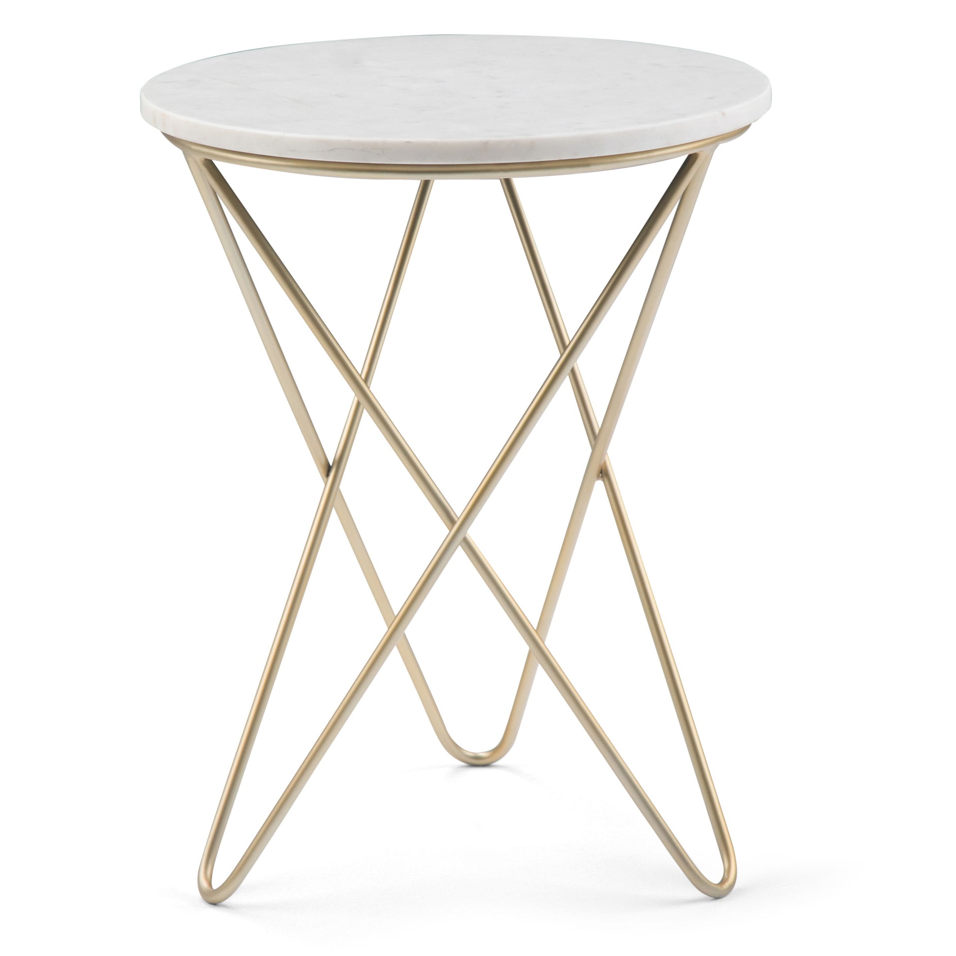 - Features marble reinforced with wood substrate to create a durable long lasting top, gold metal frame and hairpin legs
