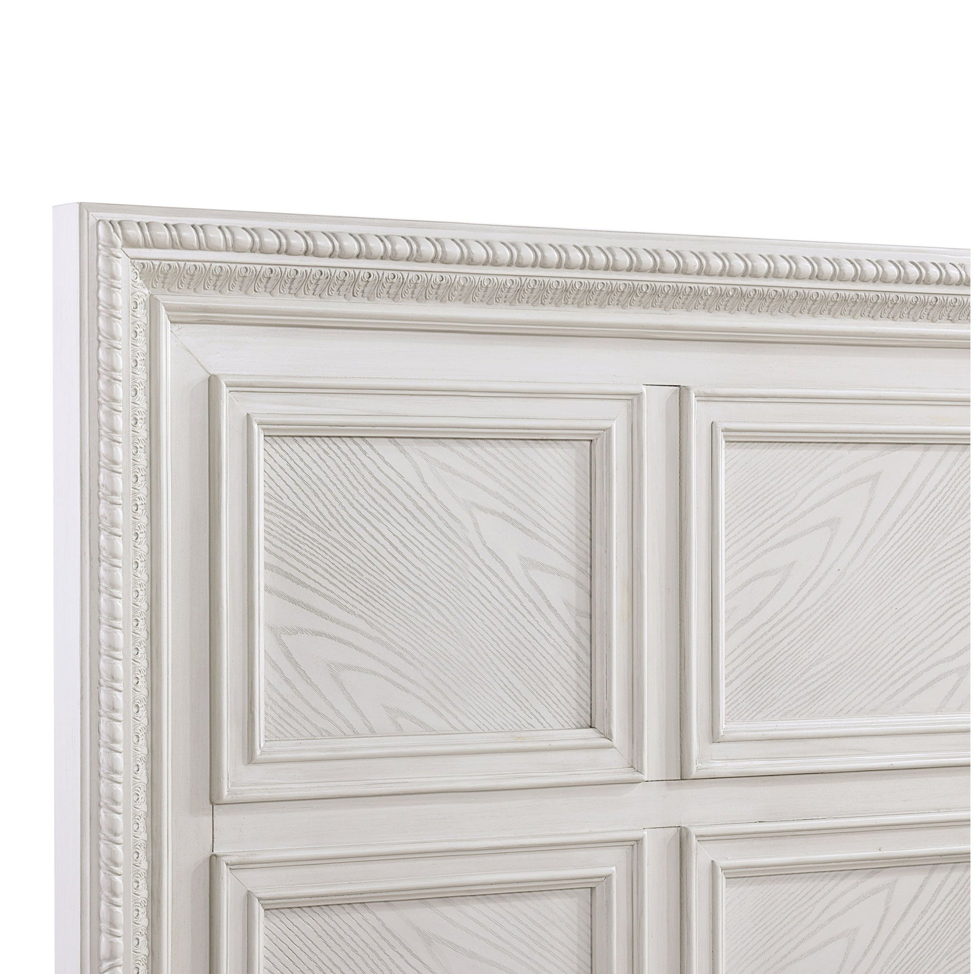 King Geometric Design Headboard Panel Bed Bedroom Furniture - Antique White