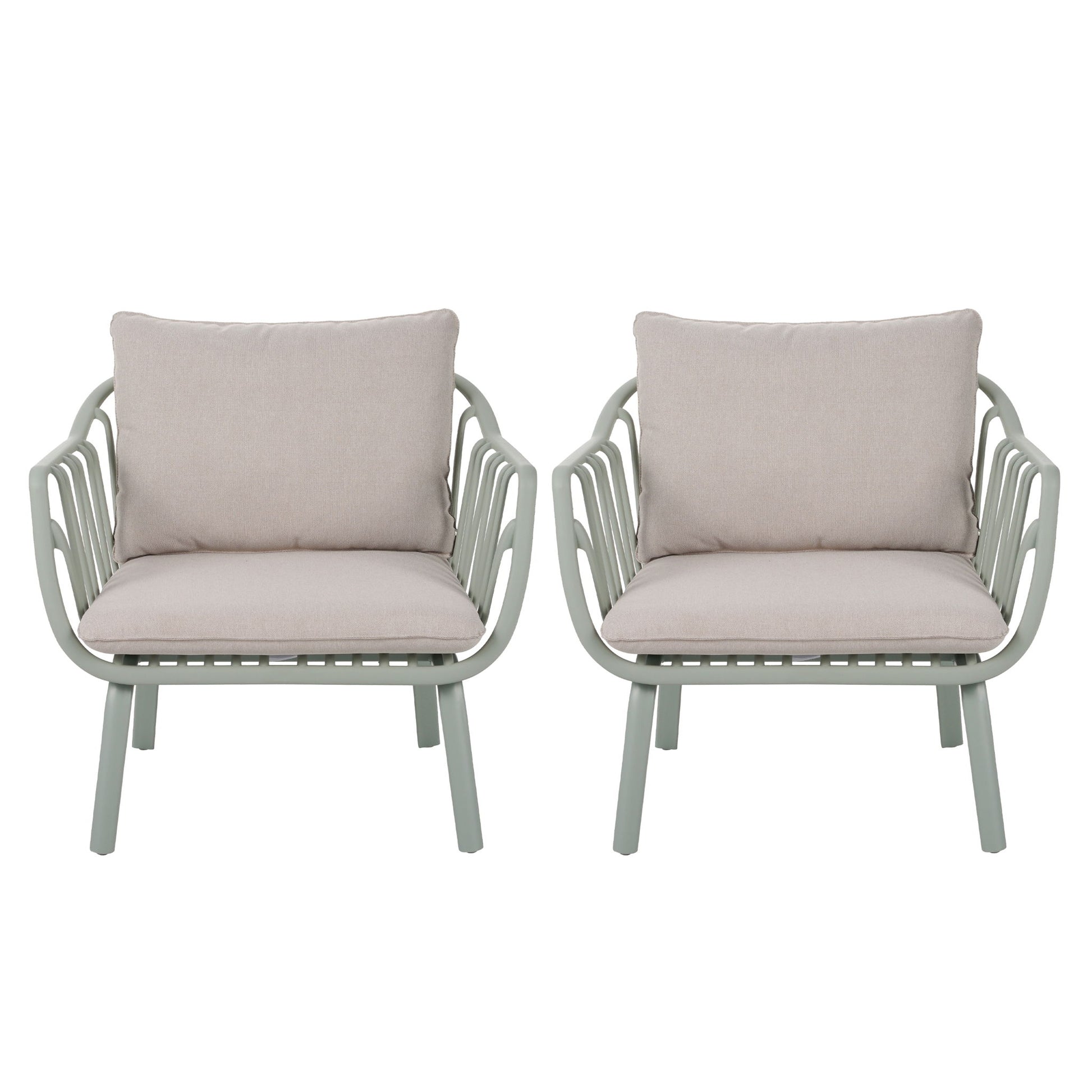 Huron - Outdoor Patio Club Chair (Set of 2) - Beige / Light Green