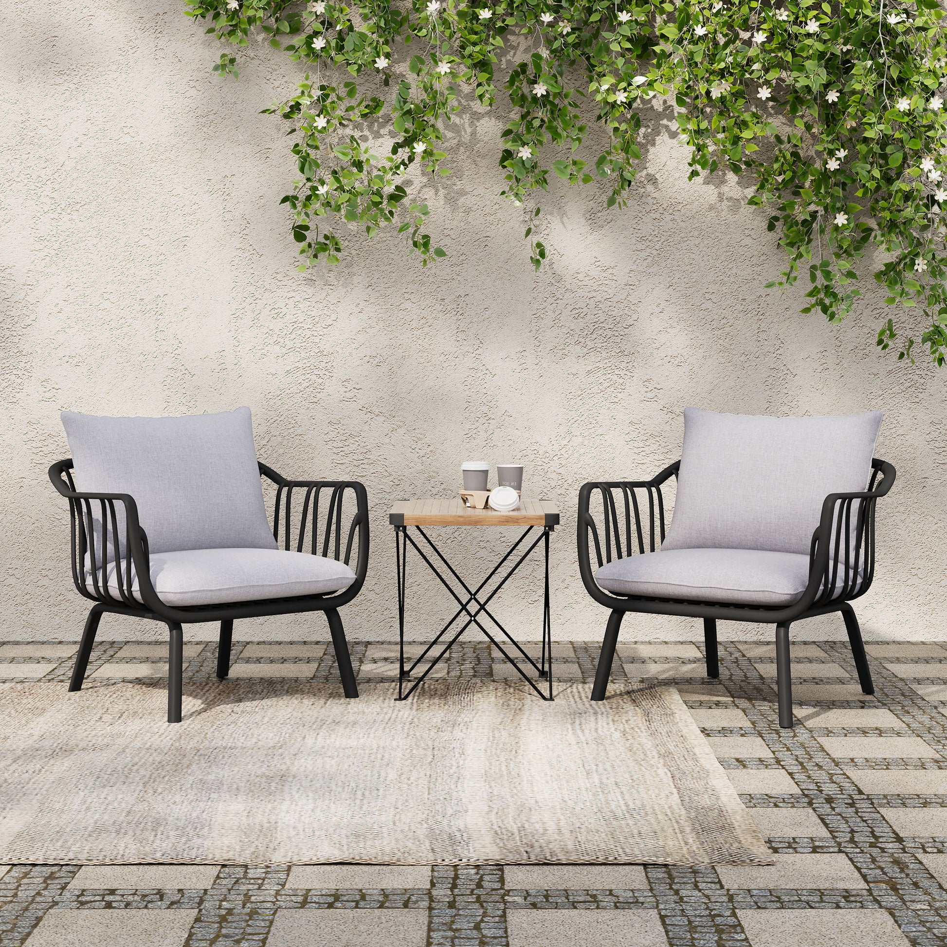 - Assembly Required: The chair set requires some assembly, with all necessary instructions and tools included. The set includes two chairs, suitable for both outdoor and indoor use.
