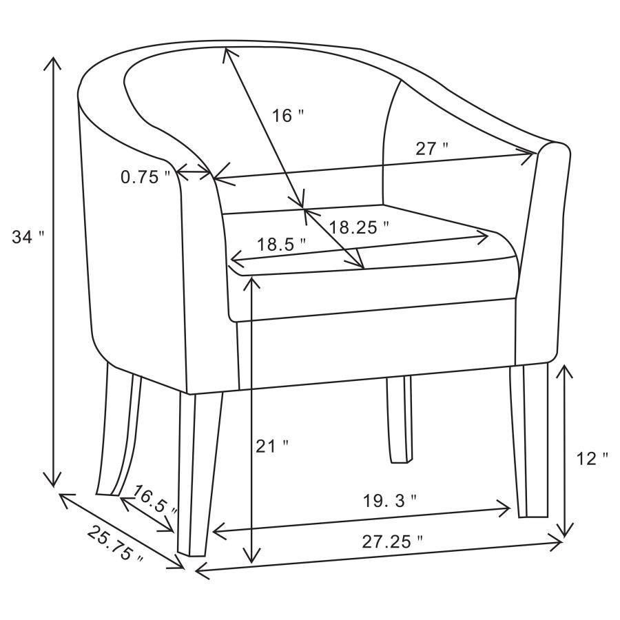 Pull out the retro design blueprint and add this accent chair to the mix. A busy print in grey and white dazzles within a monotone or colorful blend of surrounding furnishings. Retro in style, its barrel back silhouette speaks to the beloved look of mid-century. Skinny tapered legs with a cappuccino finish provide an enticing coordinating feature. This chair makes its mark in a transitional family or living room.