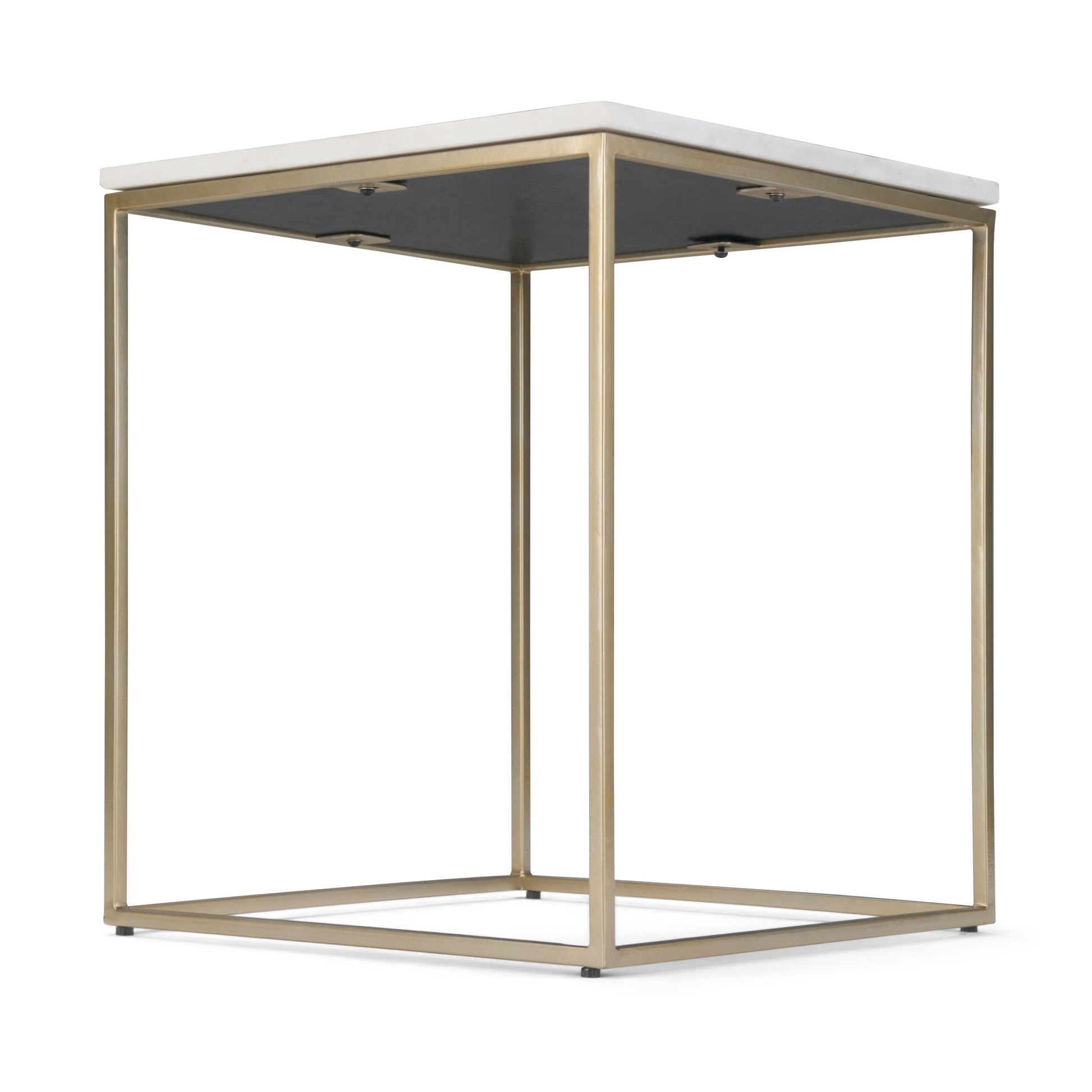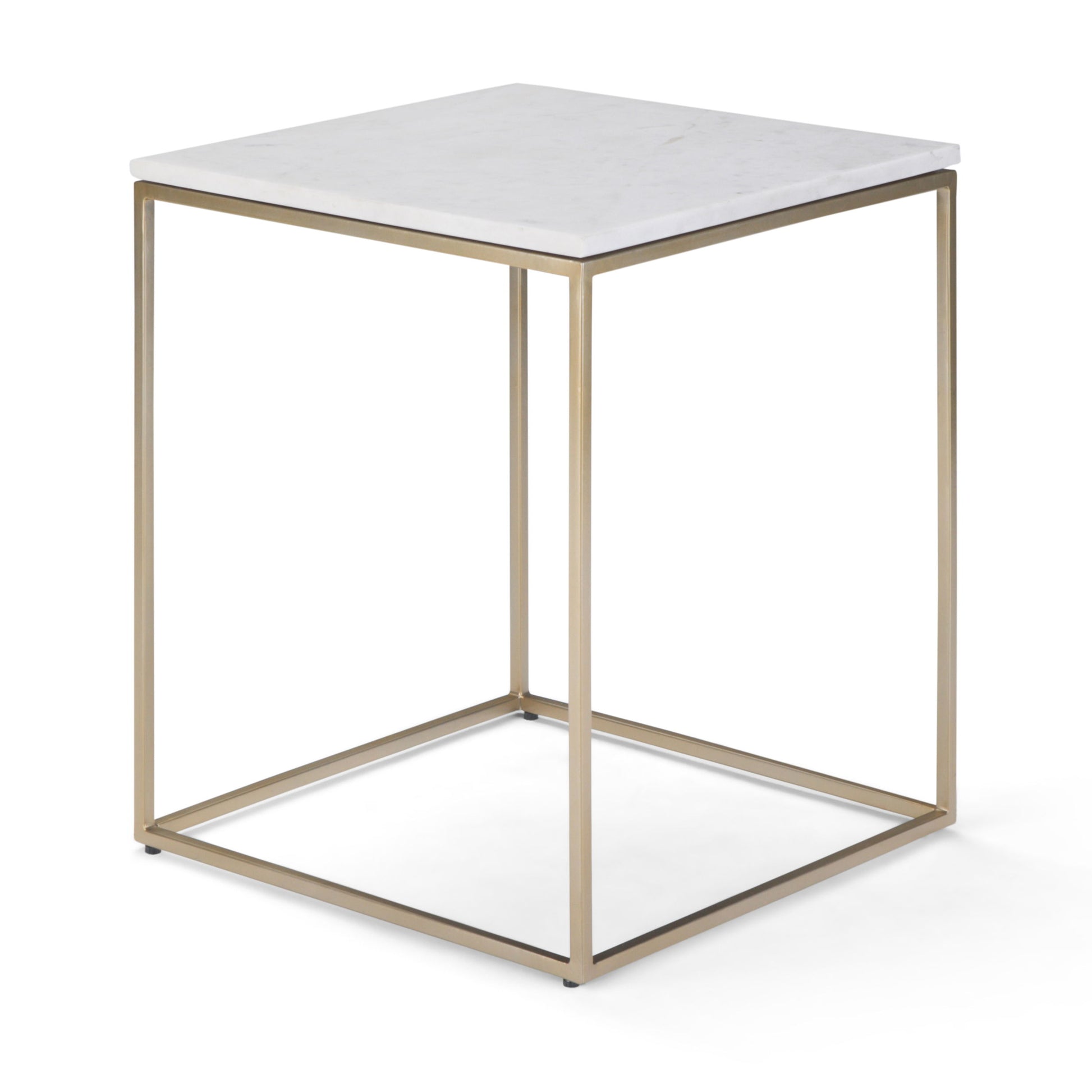 - Hand finished in a gold powder coated finish with white marble top