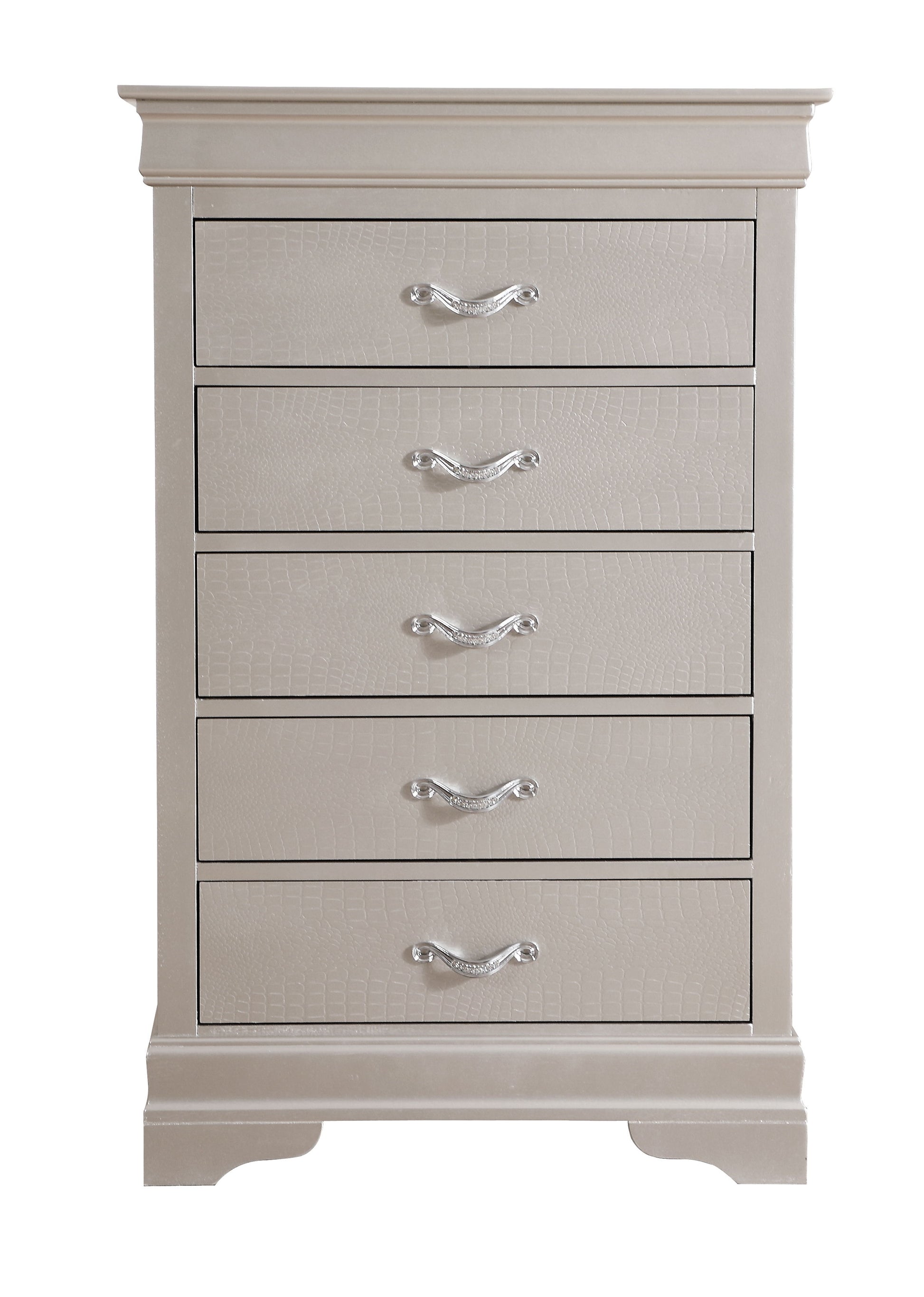- Embossed Textured Finish: Drawer fronts have a textured finish that adds depth and style to the piece.