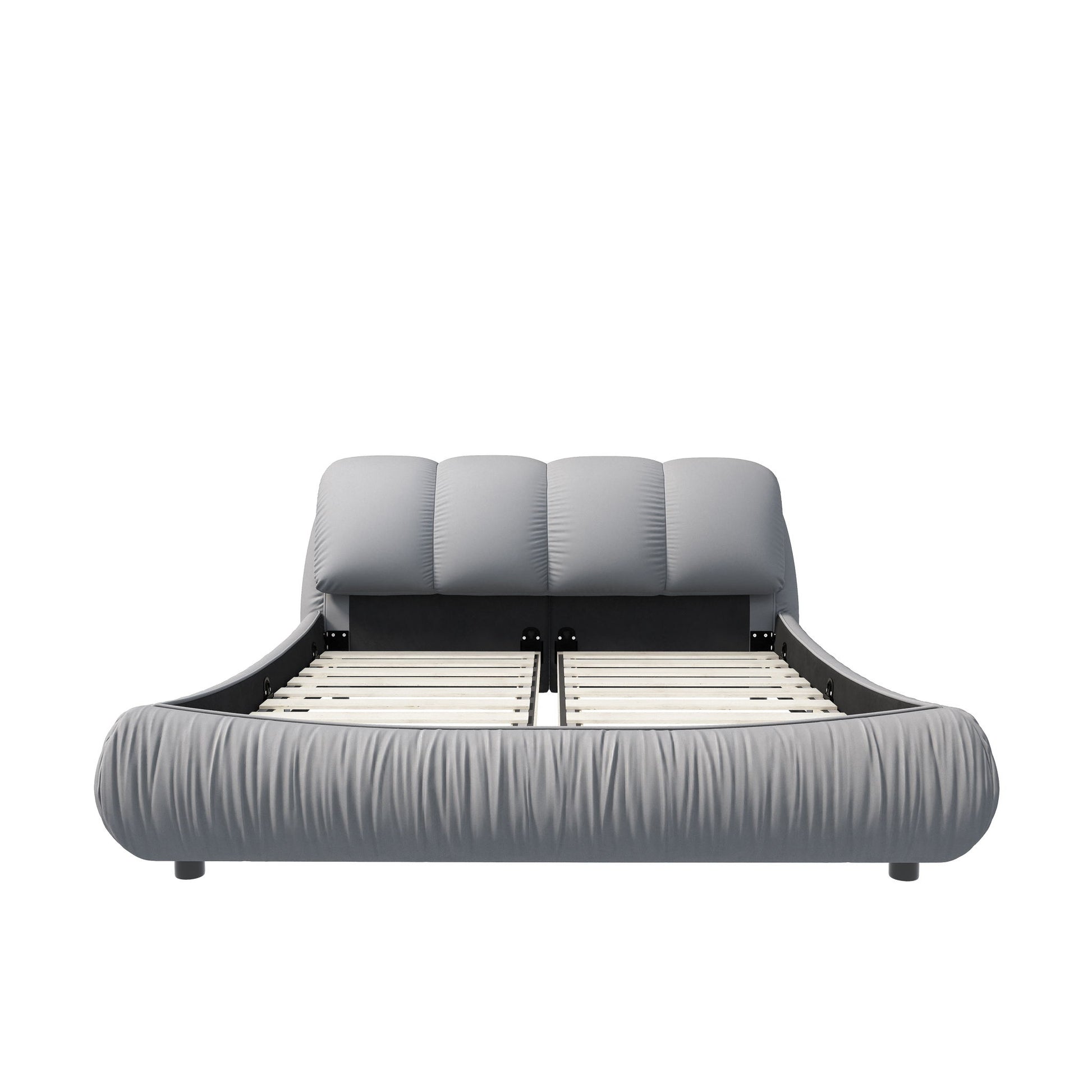 King Size Luxury Upholstered Platform Bed With Oversized Padded Backrest And Solid Wood Frame, Suitable For Multiple Heights Of Mattresses - Gray