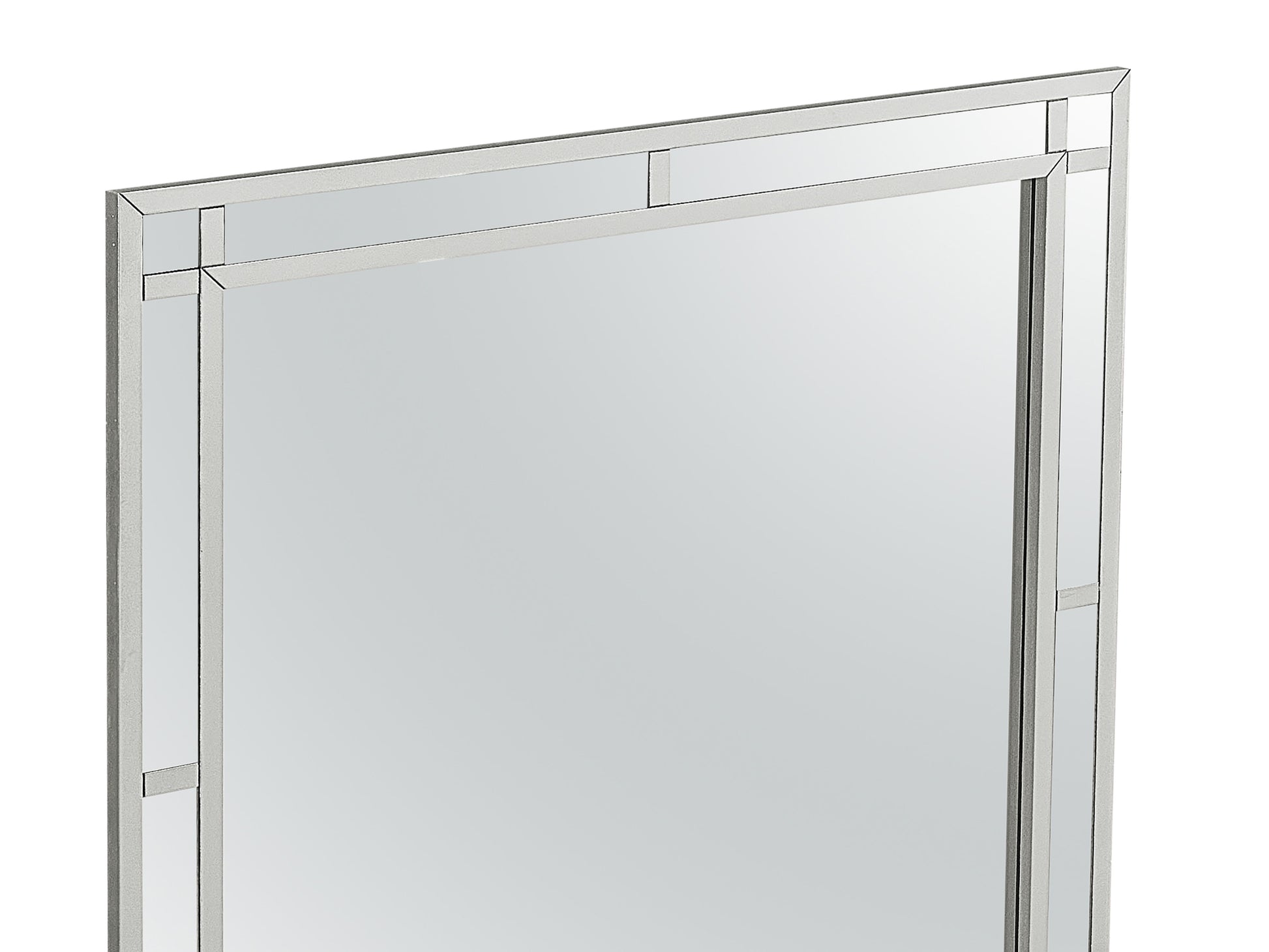 - Silvery Champagne Finish: Unique silvery champagne finish frames the mirror accents beautifully.