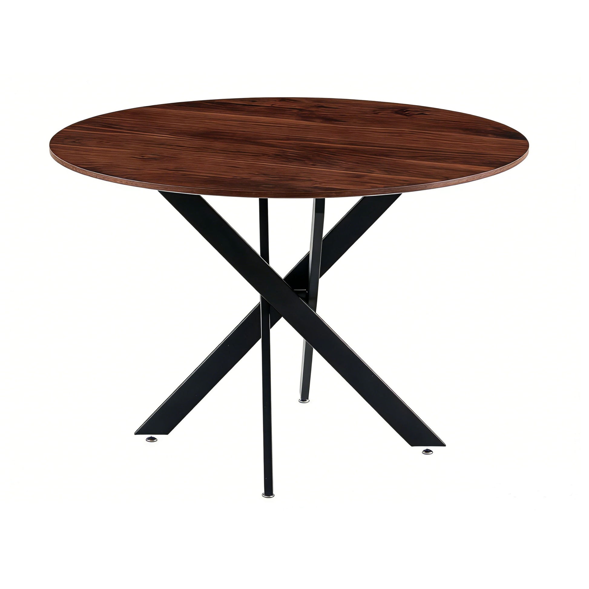 Table Mid-Century Dining Table For 4 - 6 People With Round MDF Table Top, Pedestal Dining Table, End Table Leisure Coffee Table, Cross Leg - Matte Black / Natural