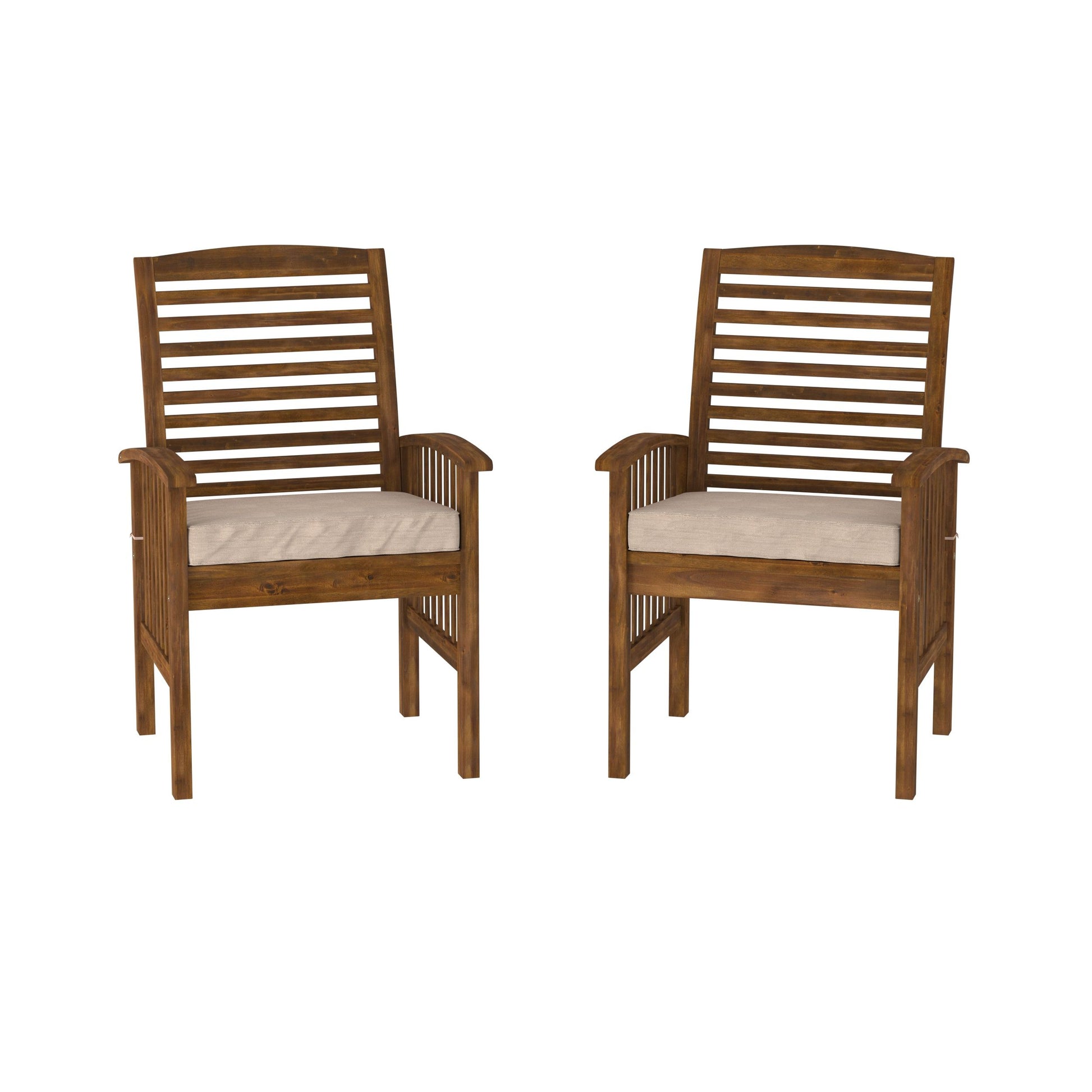 Modern 2 Piece Slat Back Patio Chairs With Cushions - Dark Brown