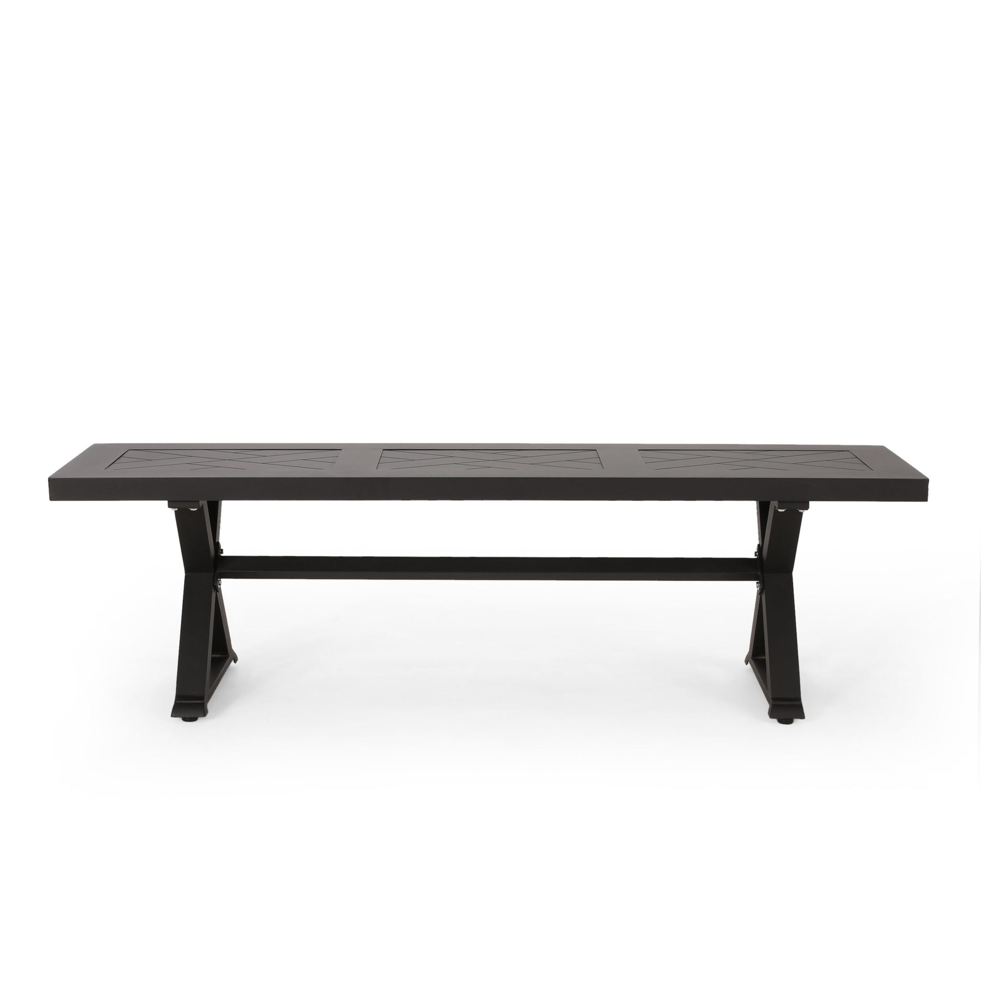 Modern Outdoor Aluminum Dining Bench With Steel Frame - Gray / Black