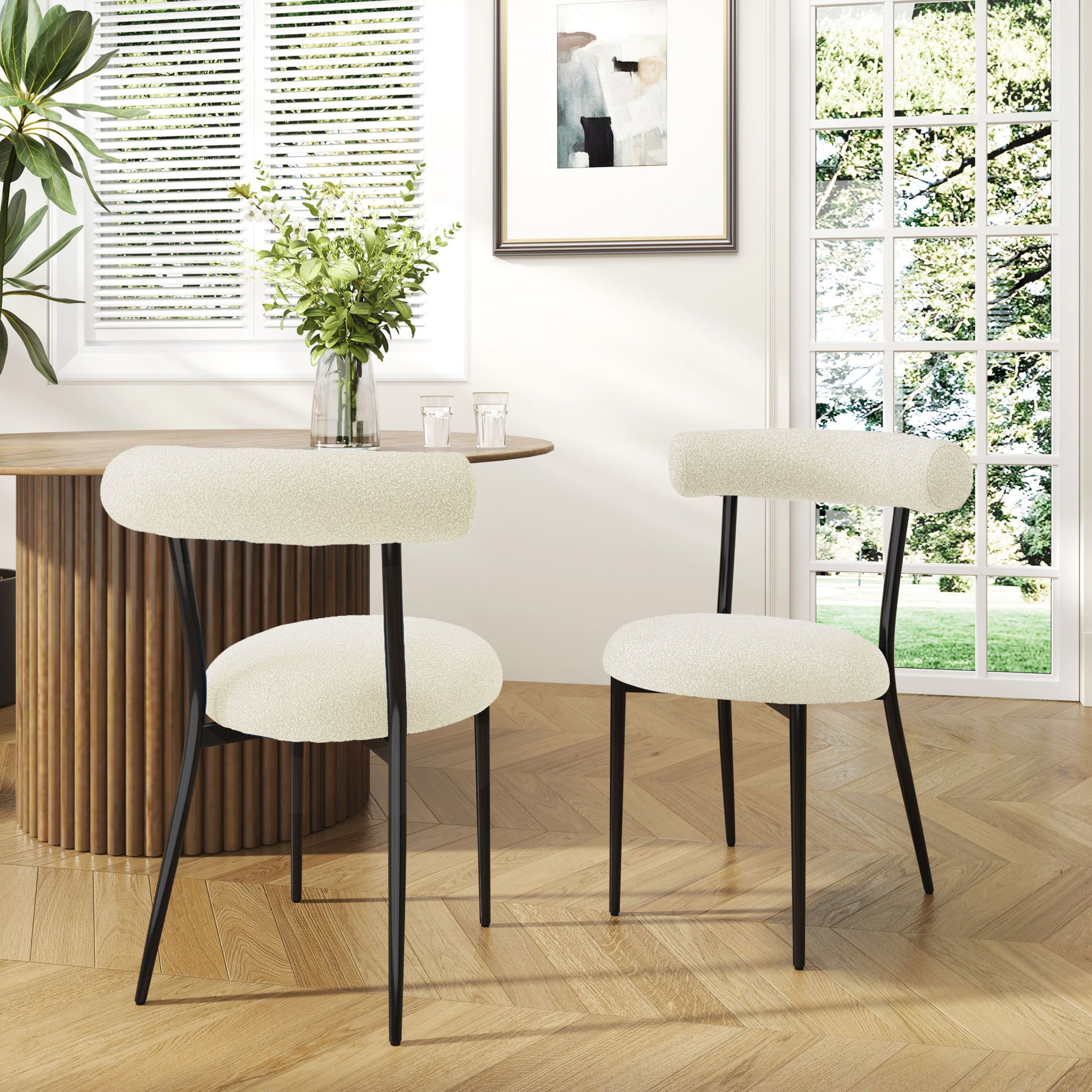 Dining Chair (Set of 2), Modern Dining Room Chairs, Black Metal Frame - White
