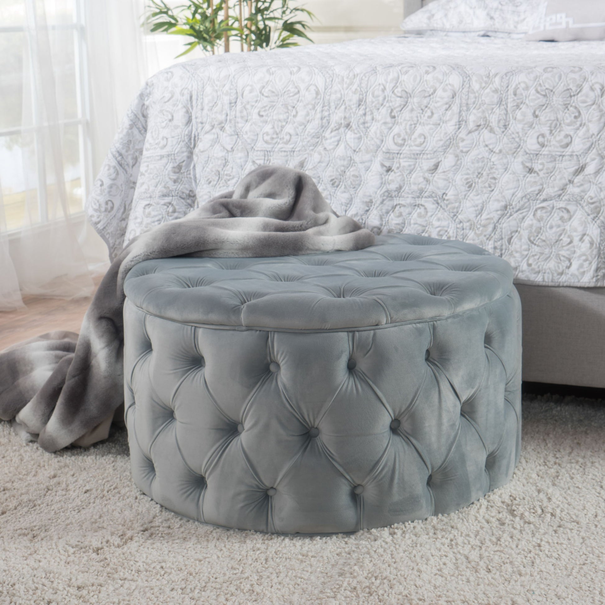 Elegant Ottoman With Plush Velvet Upholstery - Light Gray
