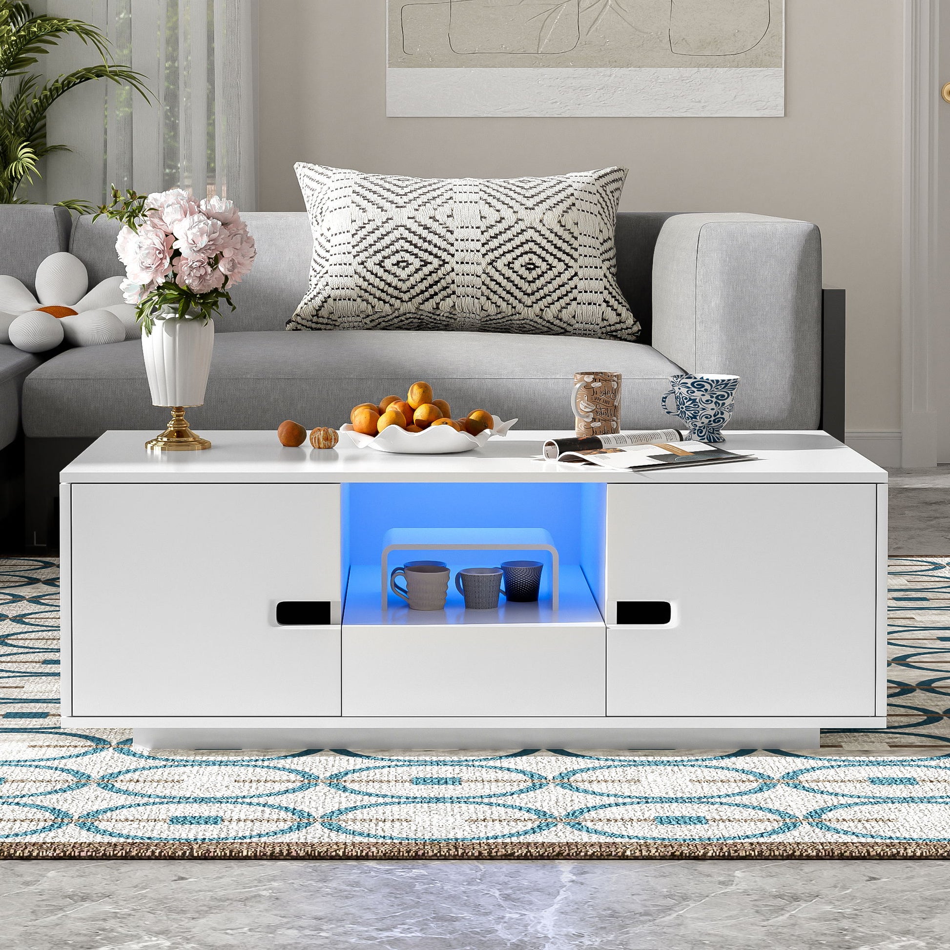 Modern High Glossy Rectangle Coffee Table, Accent Furniture With 16 Color LED Lights For Living Room - White