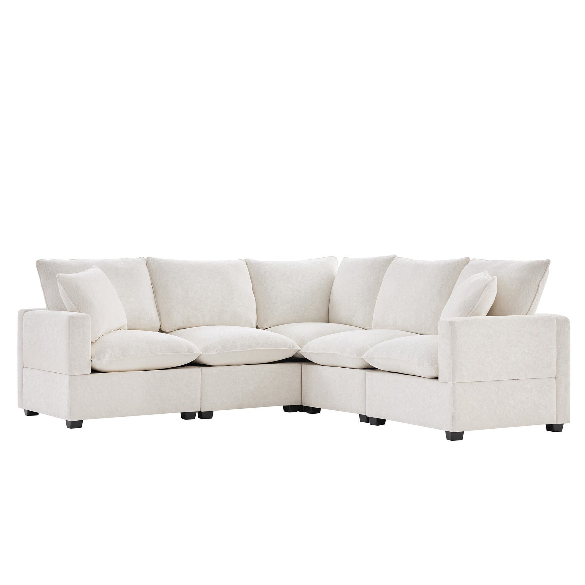 Modern L Shape Modular Sofa, 5 Seat Chenille Sectional Couch Set With 2 Pillows Included, Freely Combinable Indoor Funiture - White