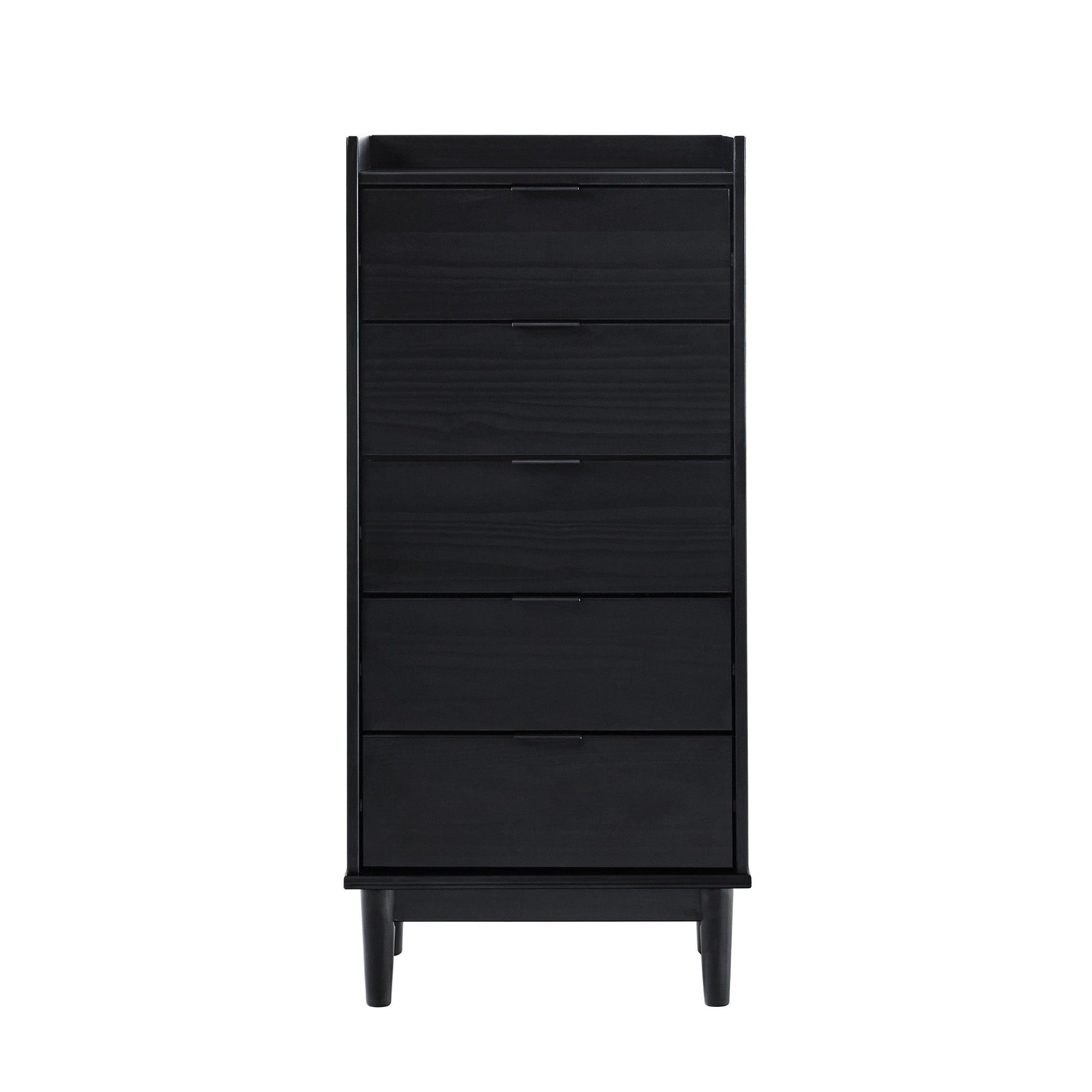 Modern Minimalist 5 Drawer Gallery Top Dresser - Black