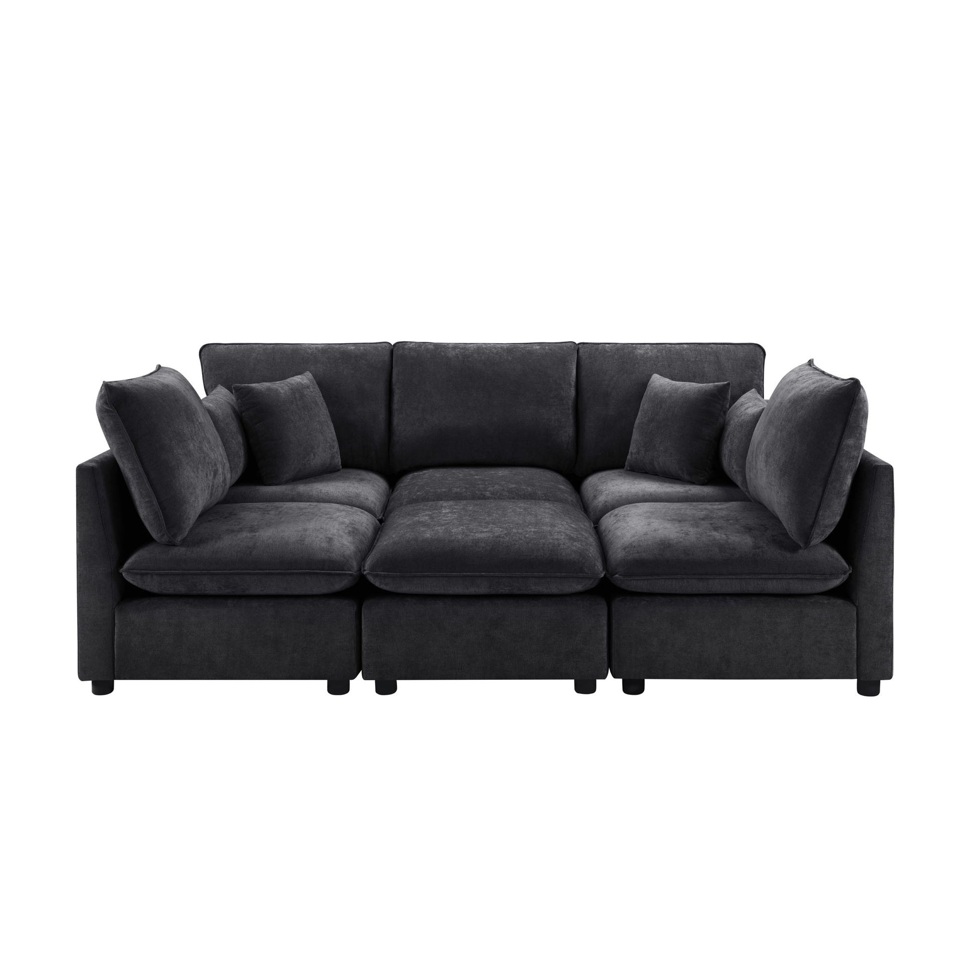 Sectional Modular Sofa, U-Shaped With Movable Ottoman, Storage Armrests And USB Ports - Black