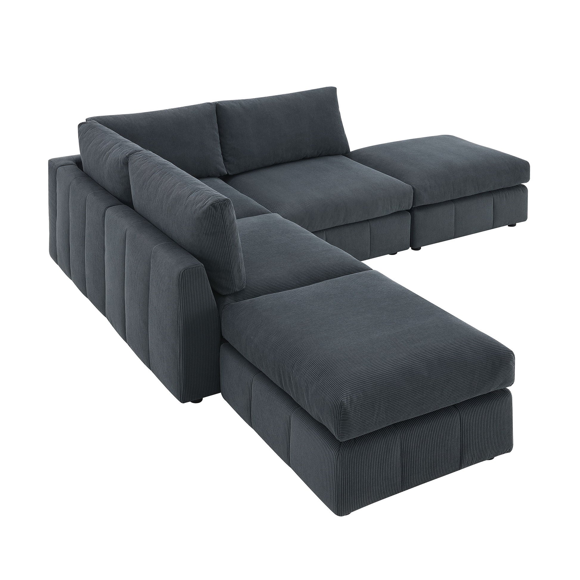 Modern Sectional Sofa With Vertical Stripes, 5 Seat Armless Couch Set With Convertible Ottomans, Various Combinations, L-Shape Indoor Furniture - Dark Gray