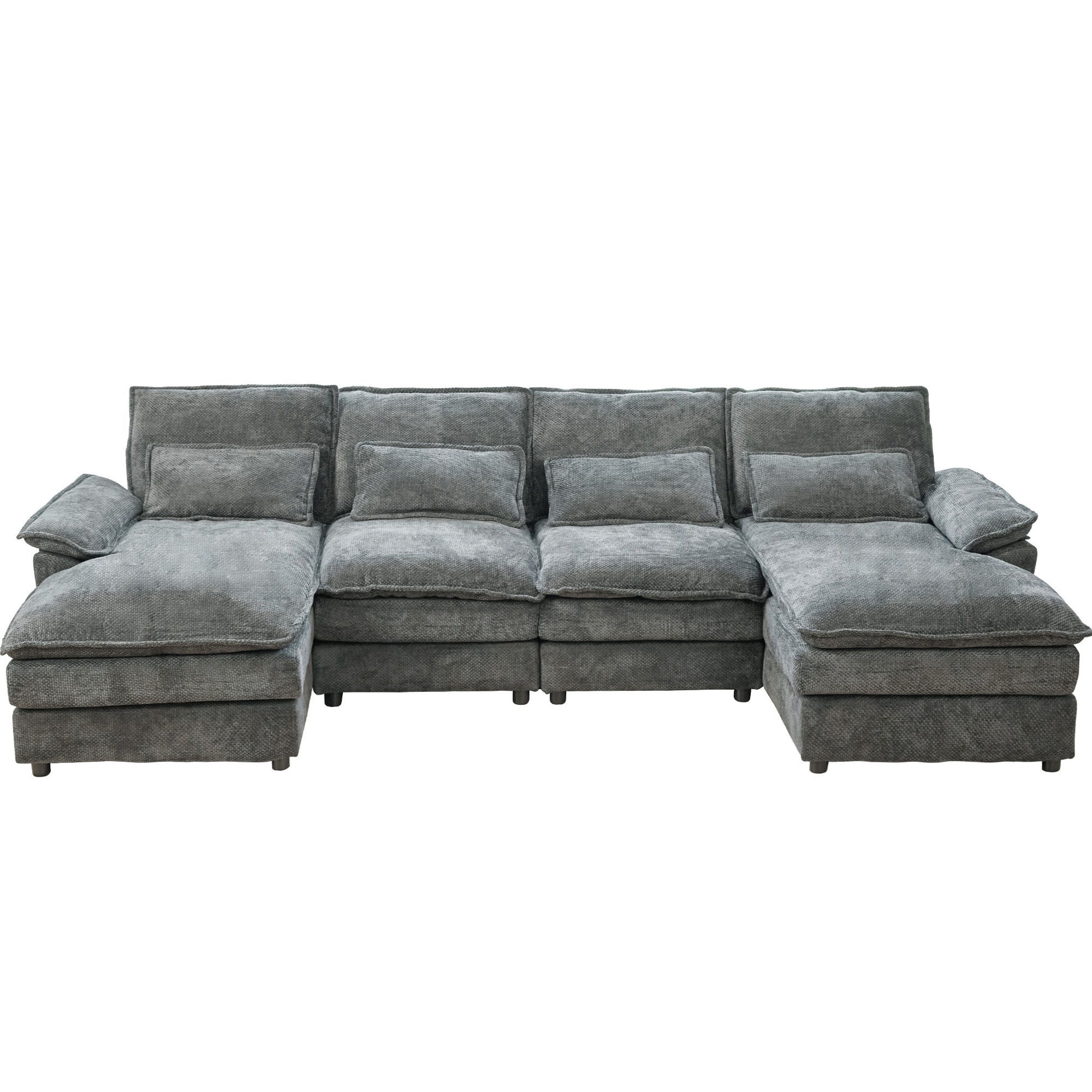 Modular Sectional Sofa Cloud Couch With Double Chaise Lounge, U Shaped - Grey
