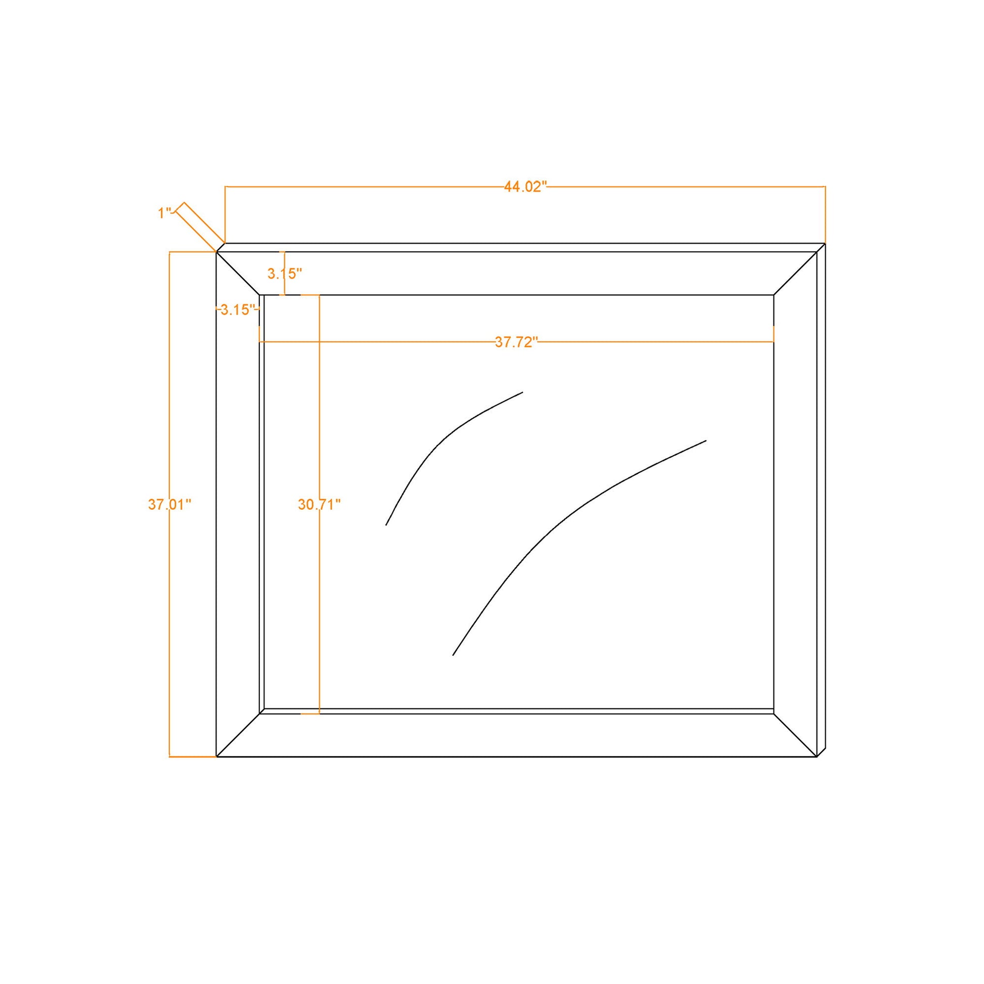 44.0"W x 0.7"D x 37.0"H - 28.6 lb
