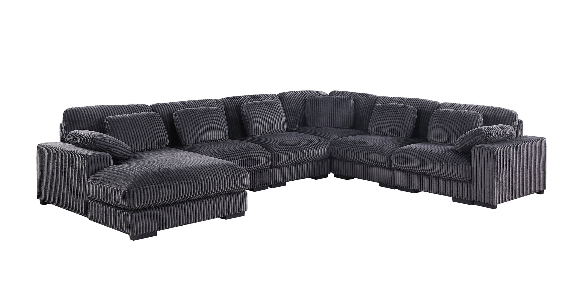 Nadine - Corduroy Modular Corner Sectional Sofa With Left Facing Chaise - Dark Gray