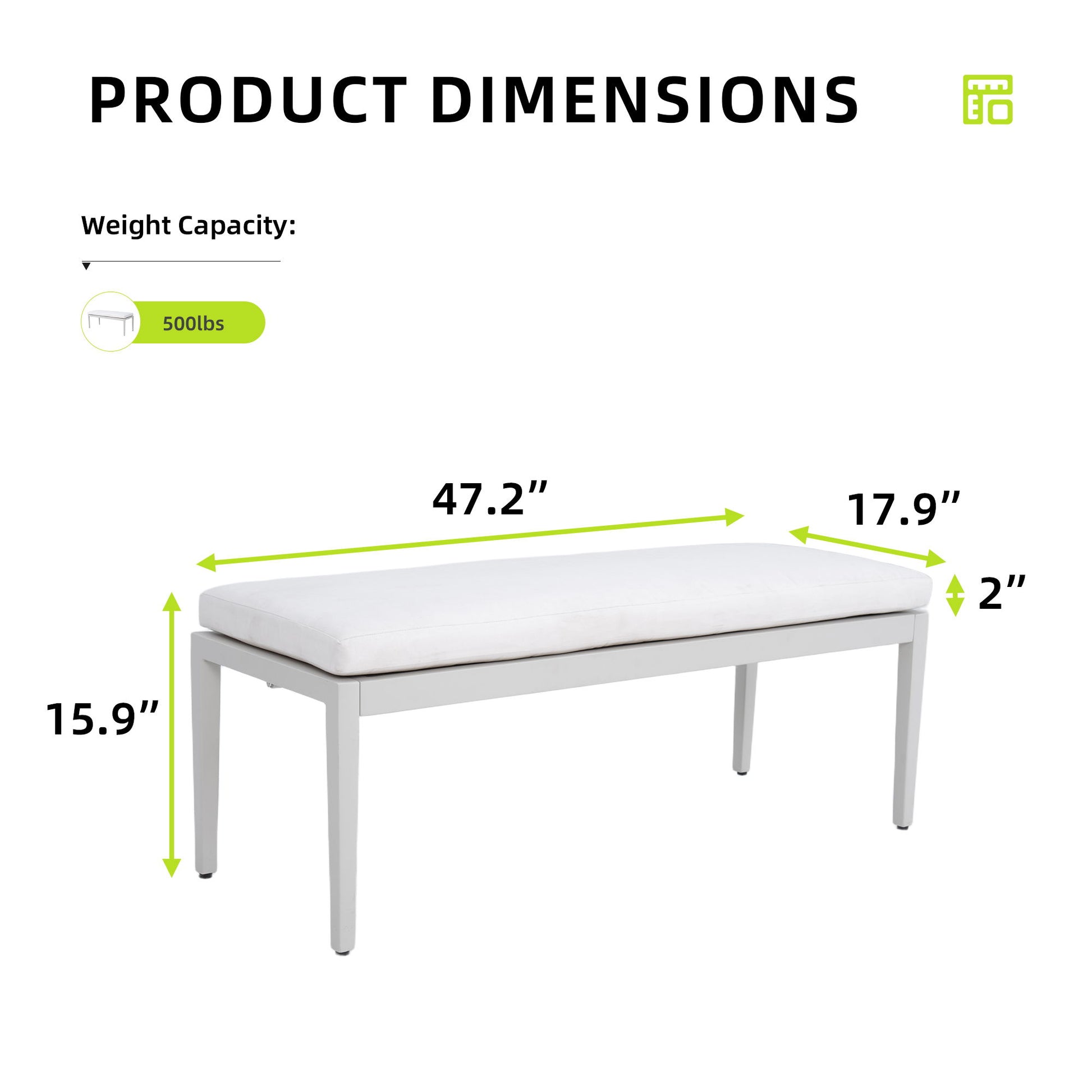 - Weather-Resistant Sunbrella Cushion: Soft yet durable fabric; resists sun, rain, snow, and humidity, and is easy to clean with mild soap or diluted bleach