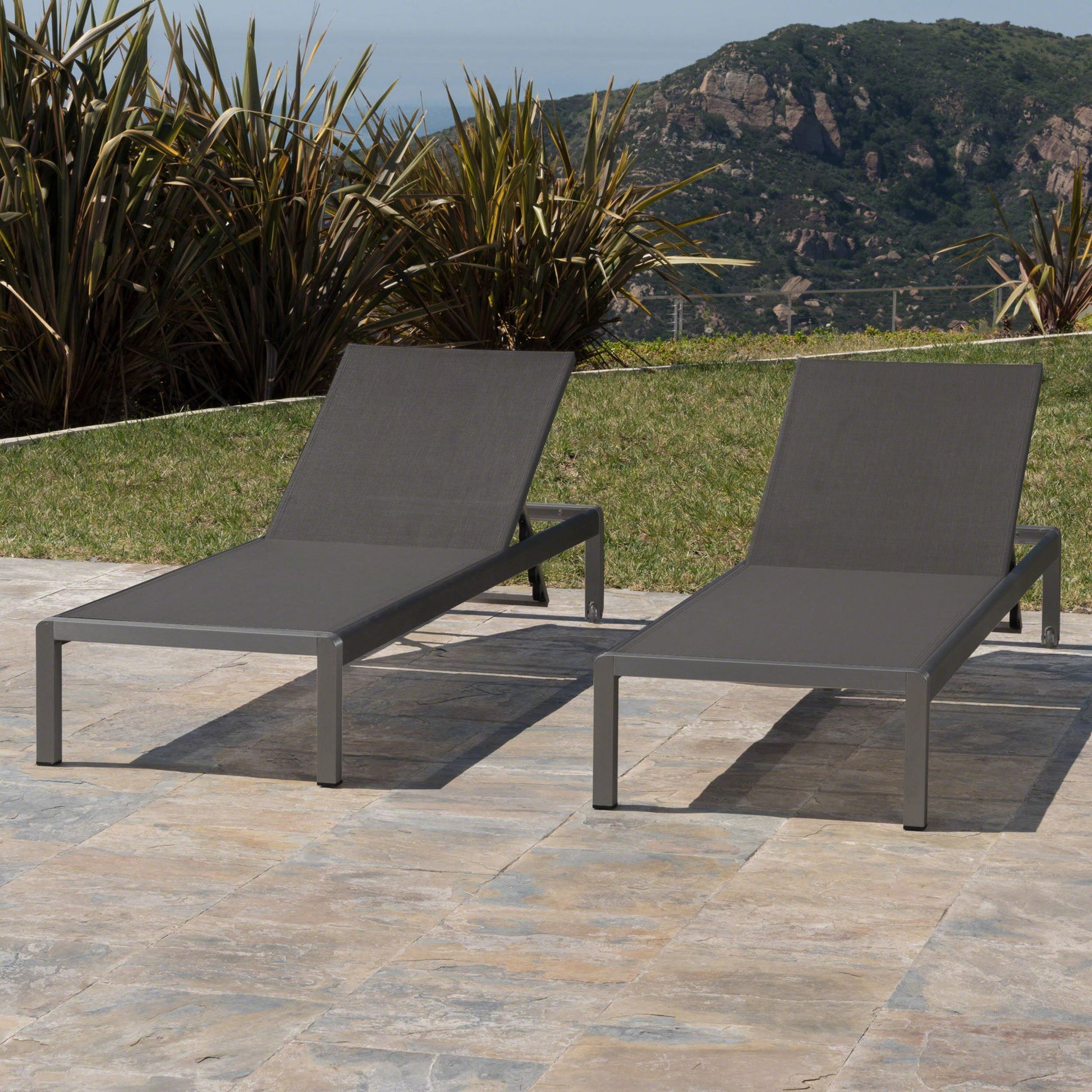 Outdoor Chaise Lounge (Set of 2) With Adjustable Aluminum Frame And Textilene Mesh Seating - Gray